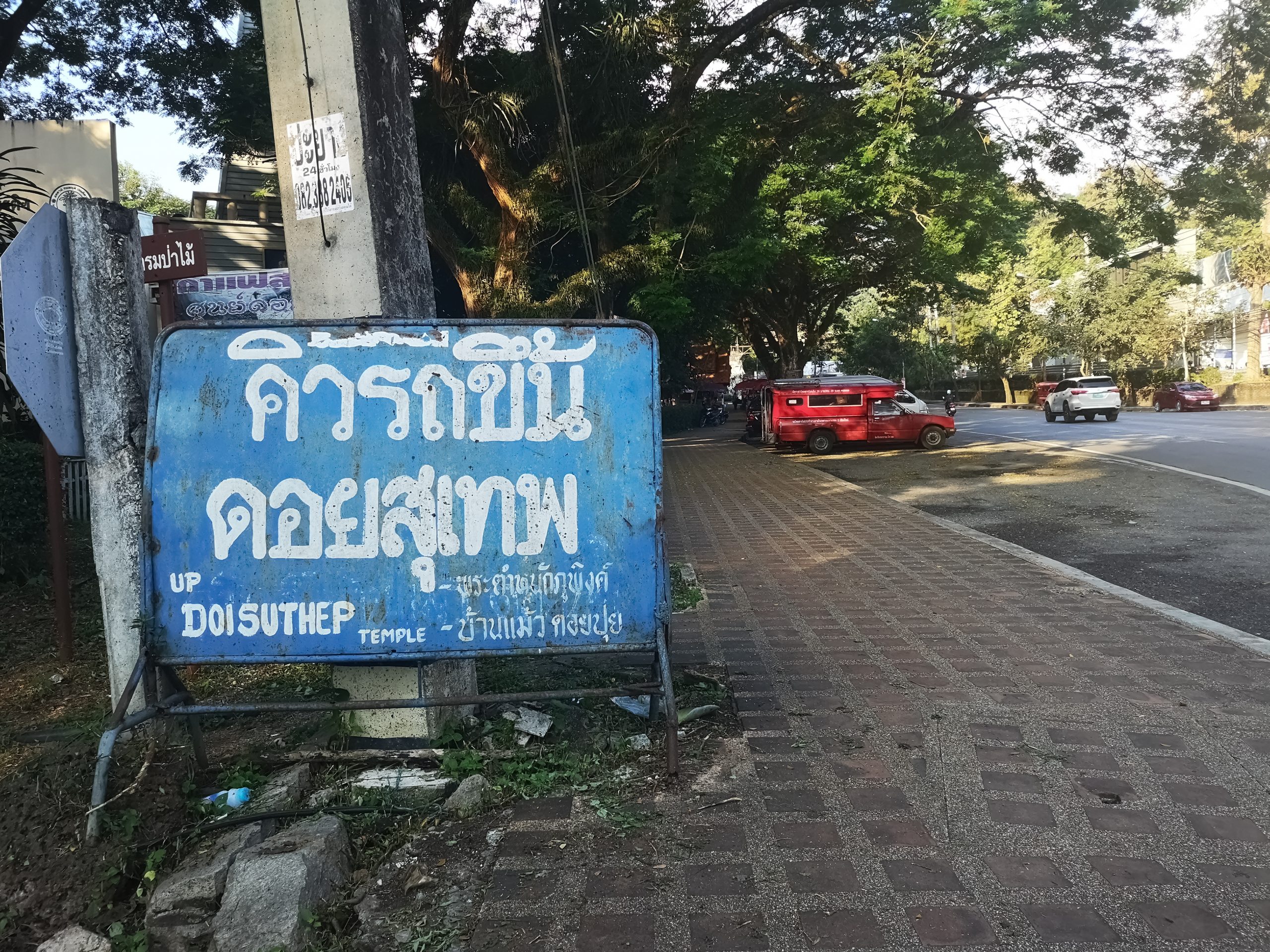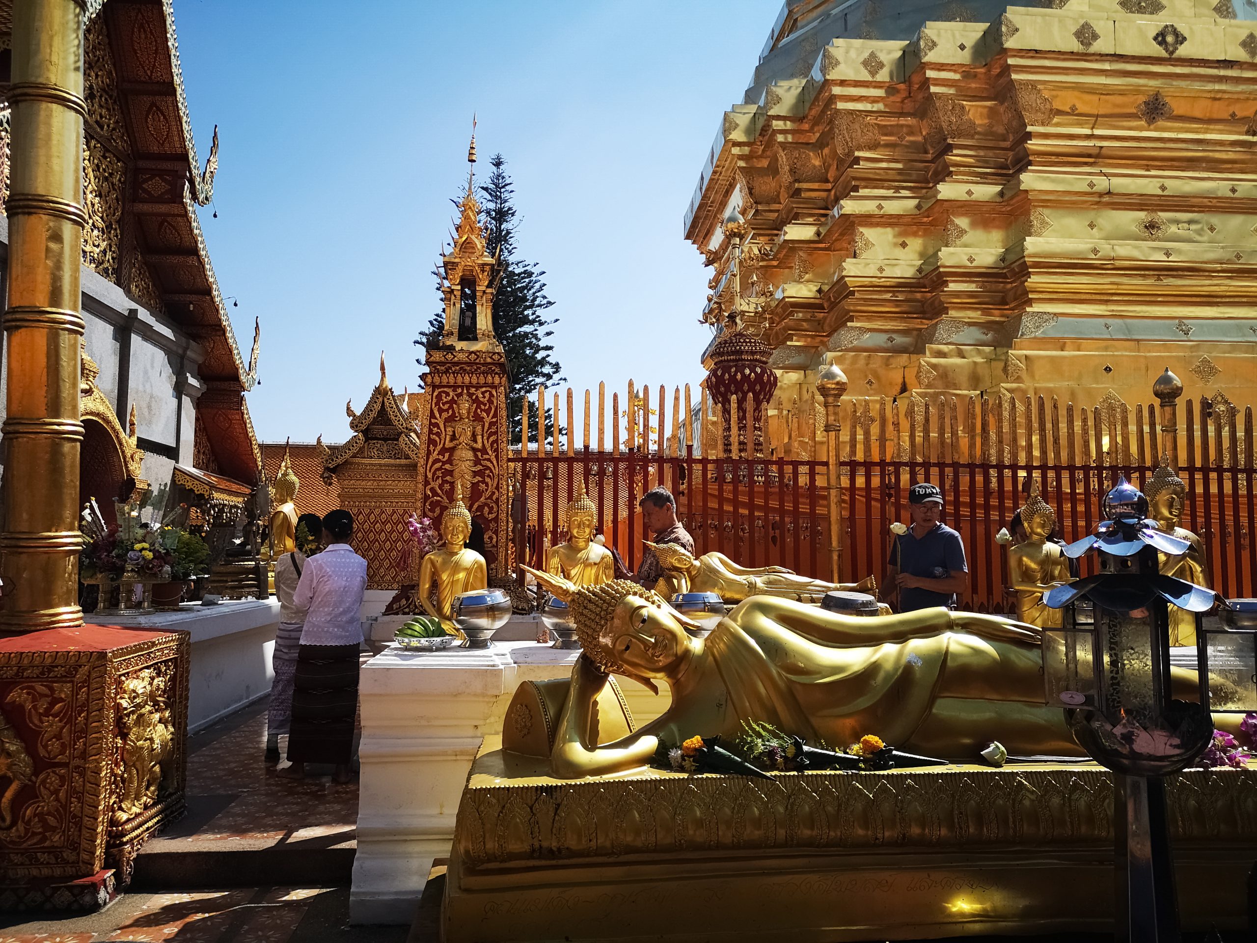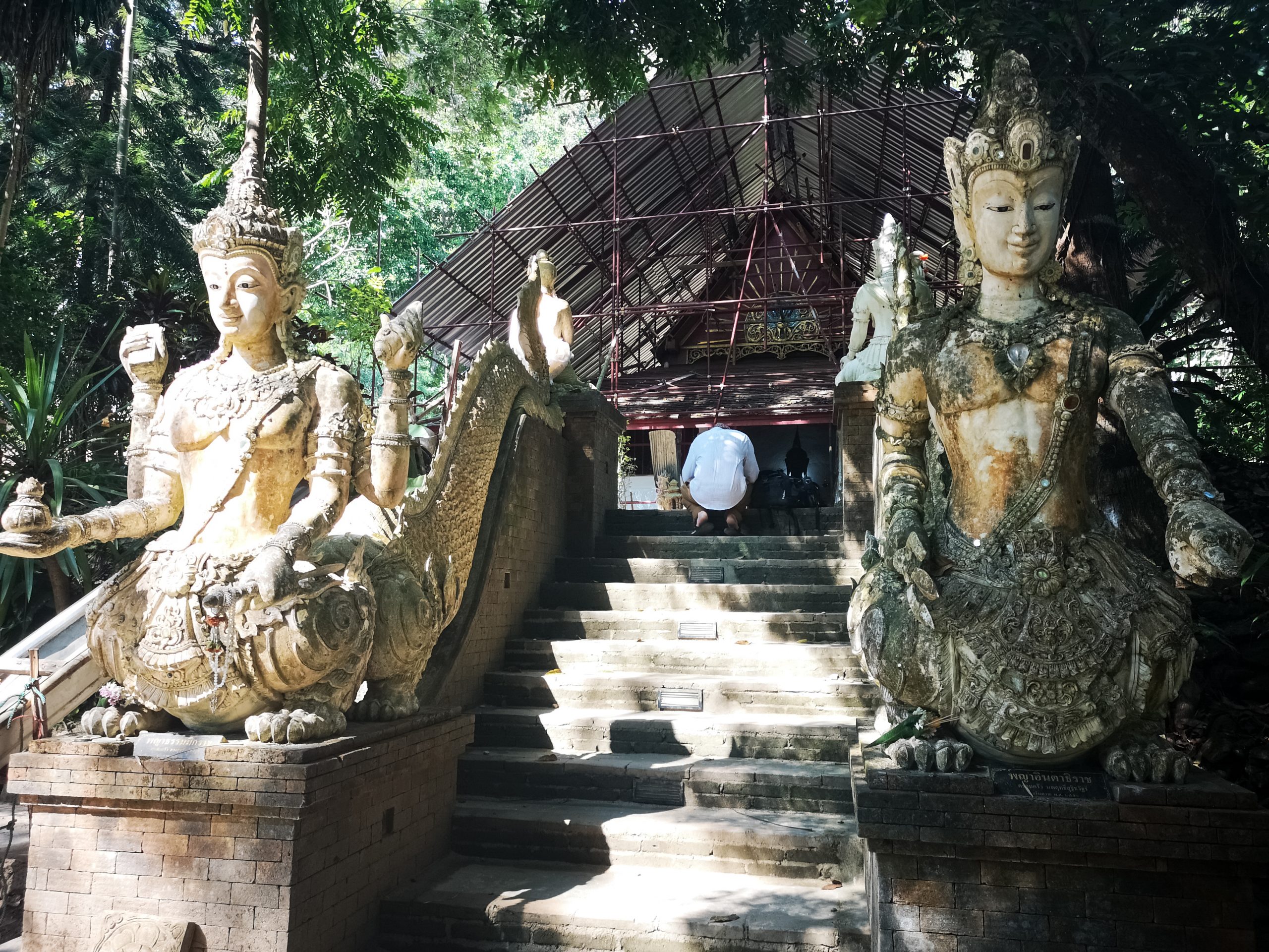 Le vendredi 23, nous partons tôt le matin pour visiter le temple Doi Suthep. Il est possible de s’y rendre en scooter ou en minibus appelés « Song Teaw ». Johan et moi décidons d’y aller à pied. Il faut à peu près 3h00 de marche depuis le centre ville de Chiang Mai.
