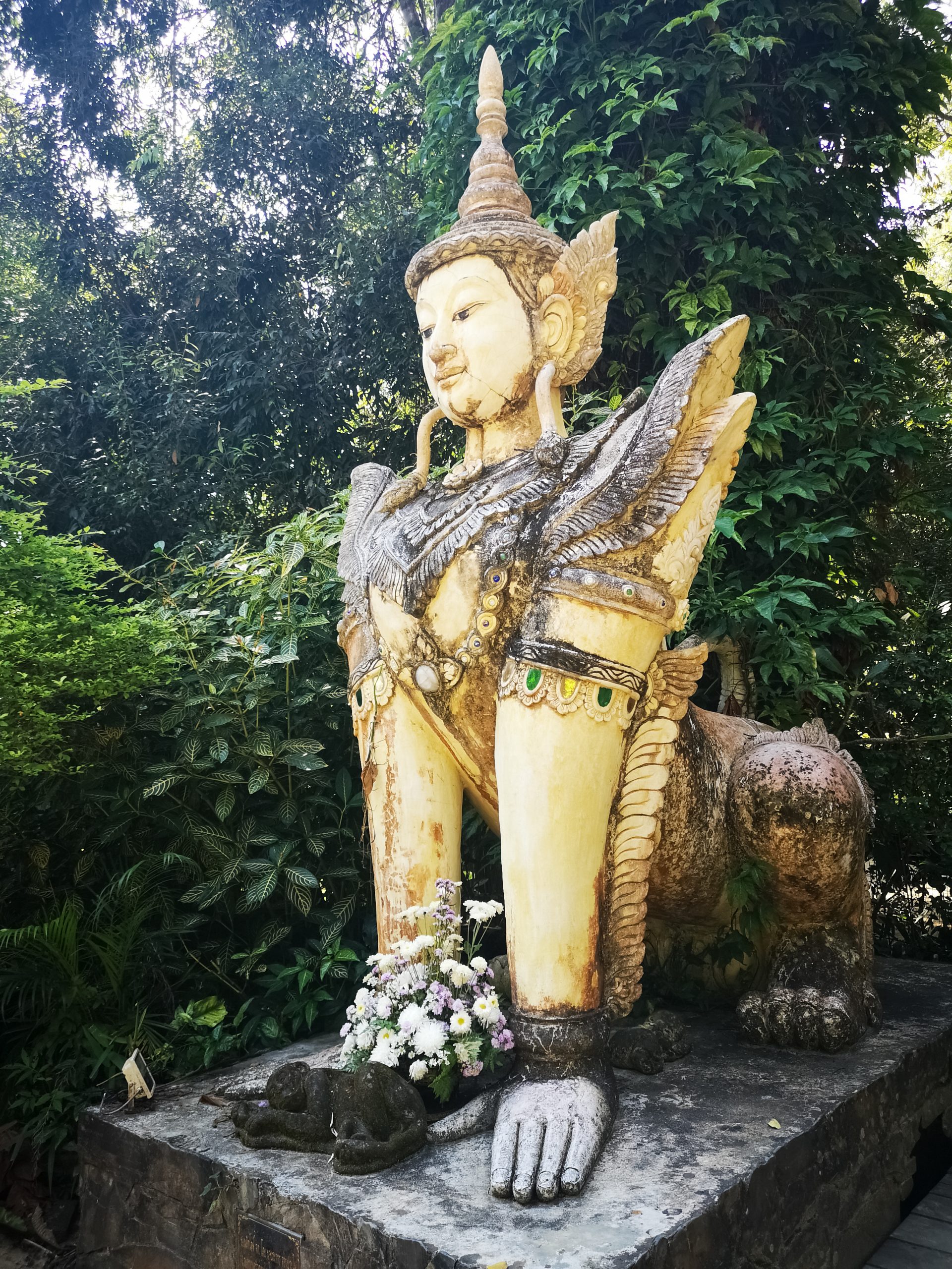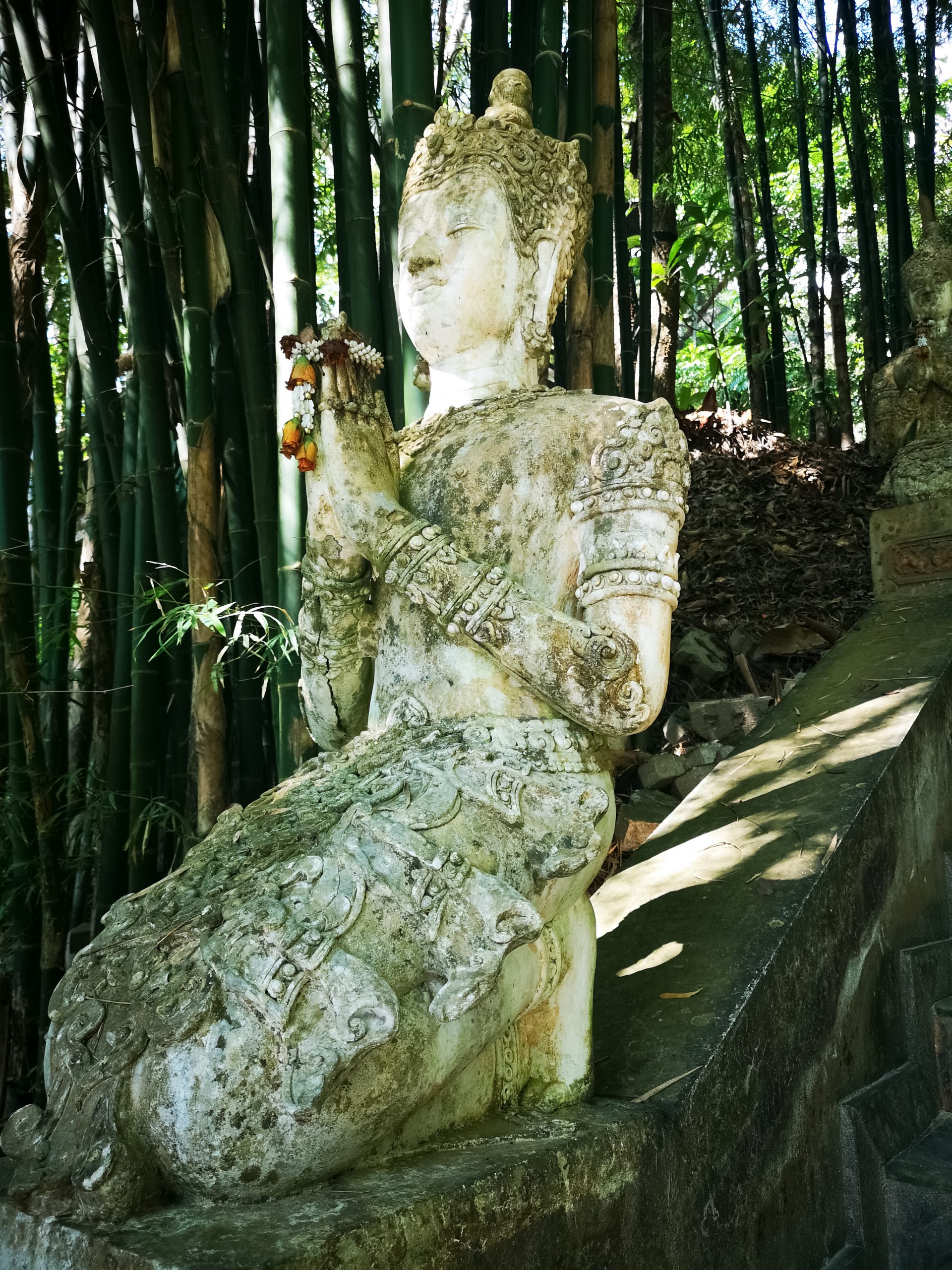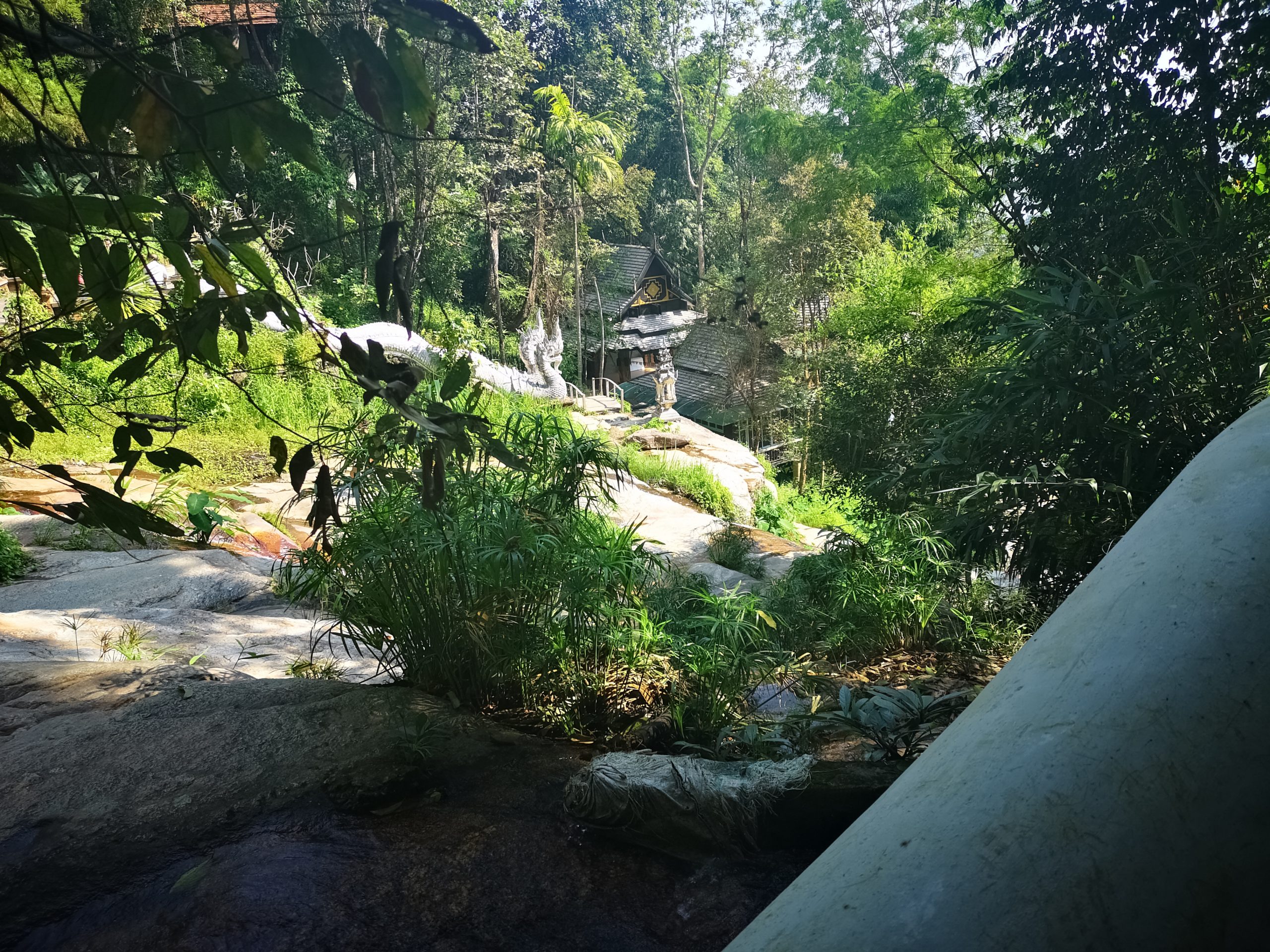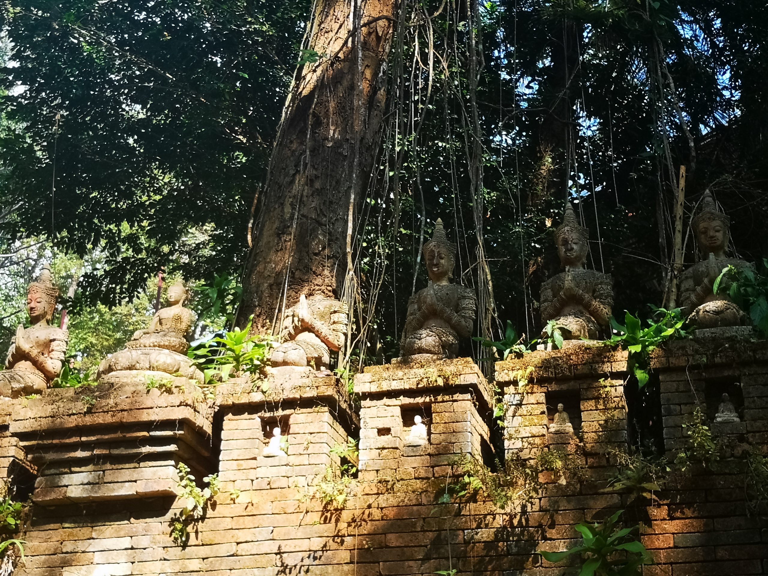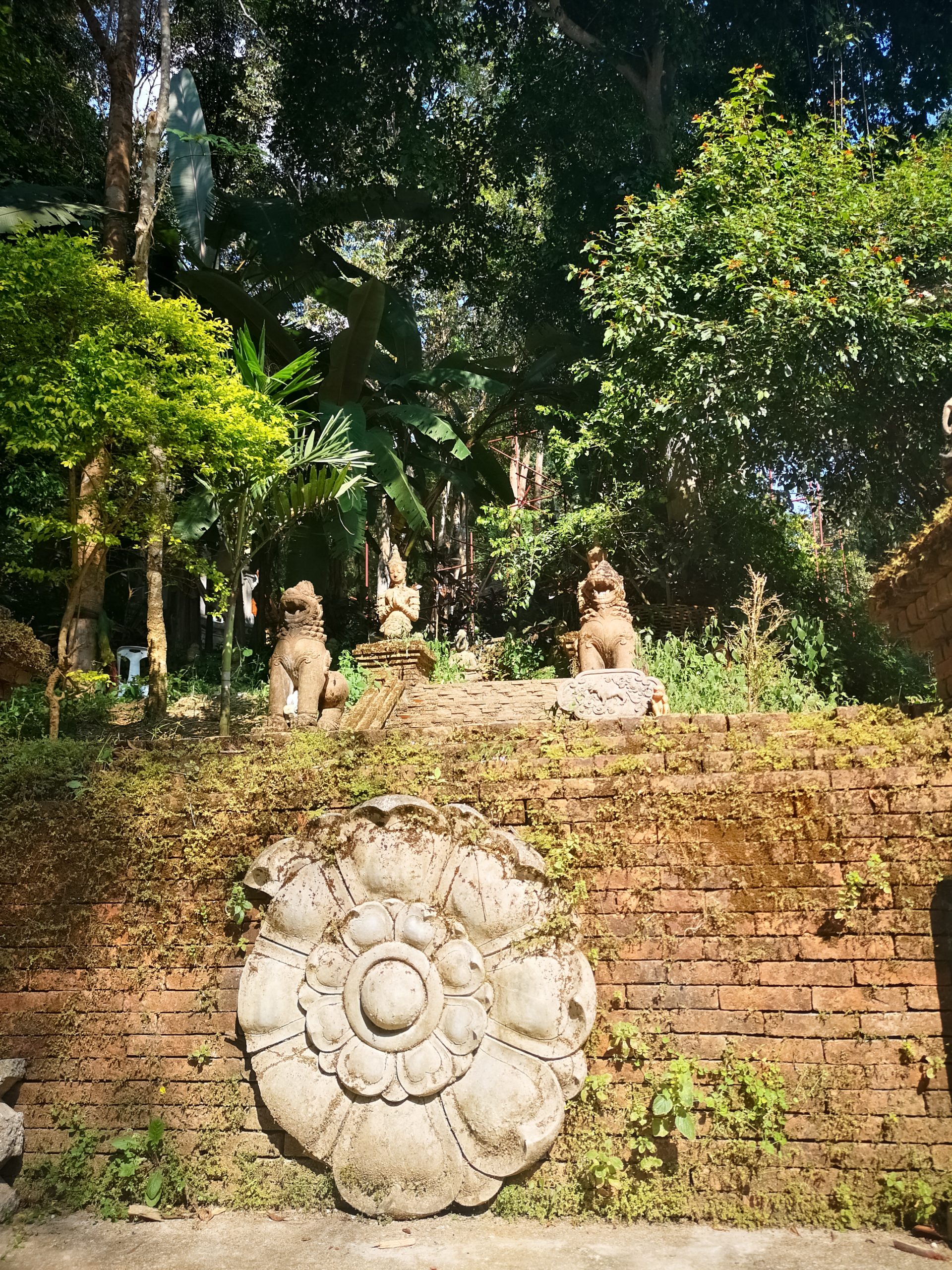 Situé en hauteur, on fait une halte au temple « Pha Lat ». Caché dans la végétation, l’environnement est paisible et serein. On y découvre plusieurs statues de divinités, bouddha, sphinx, dragons qui veillent sur toute la vallée et offrent une atmosphère mystique.