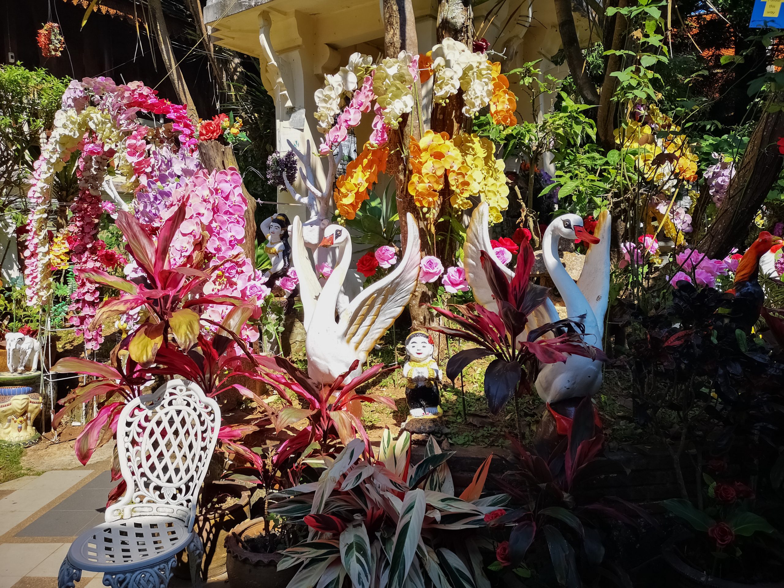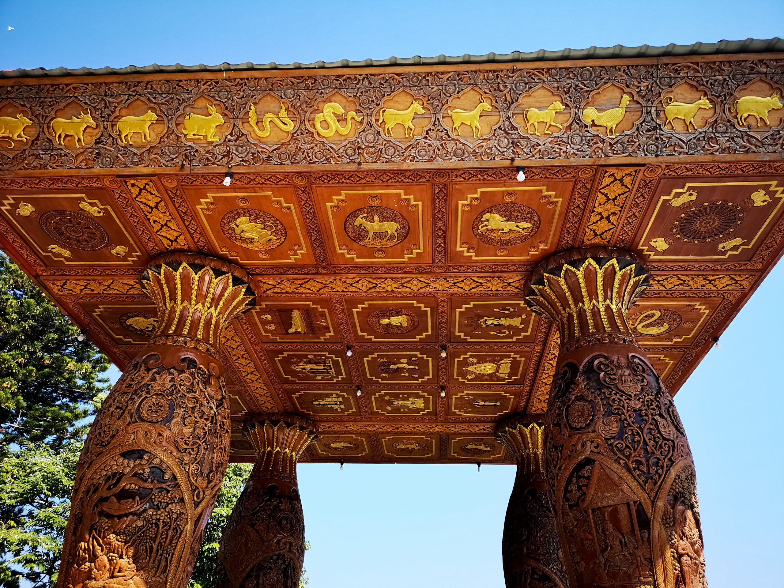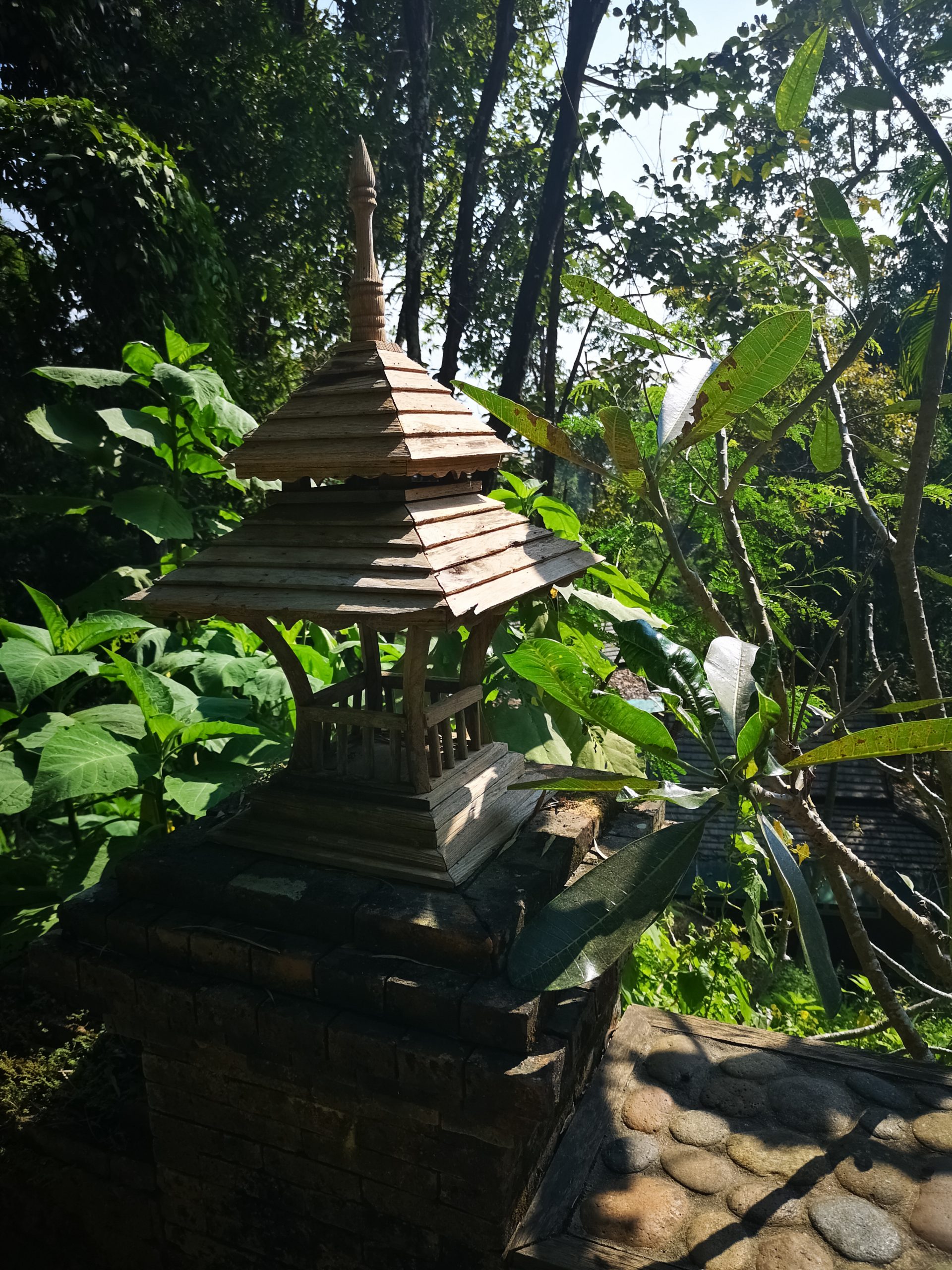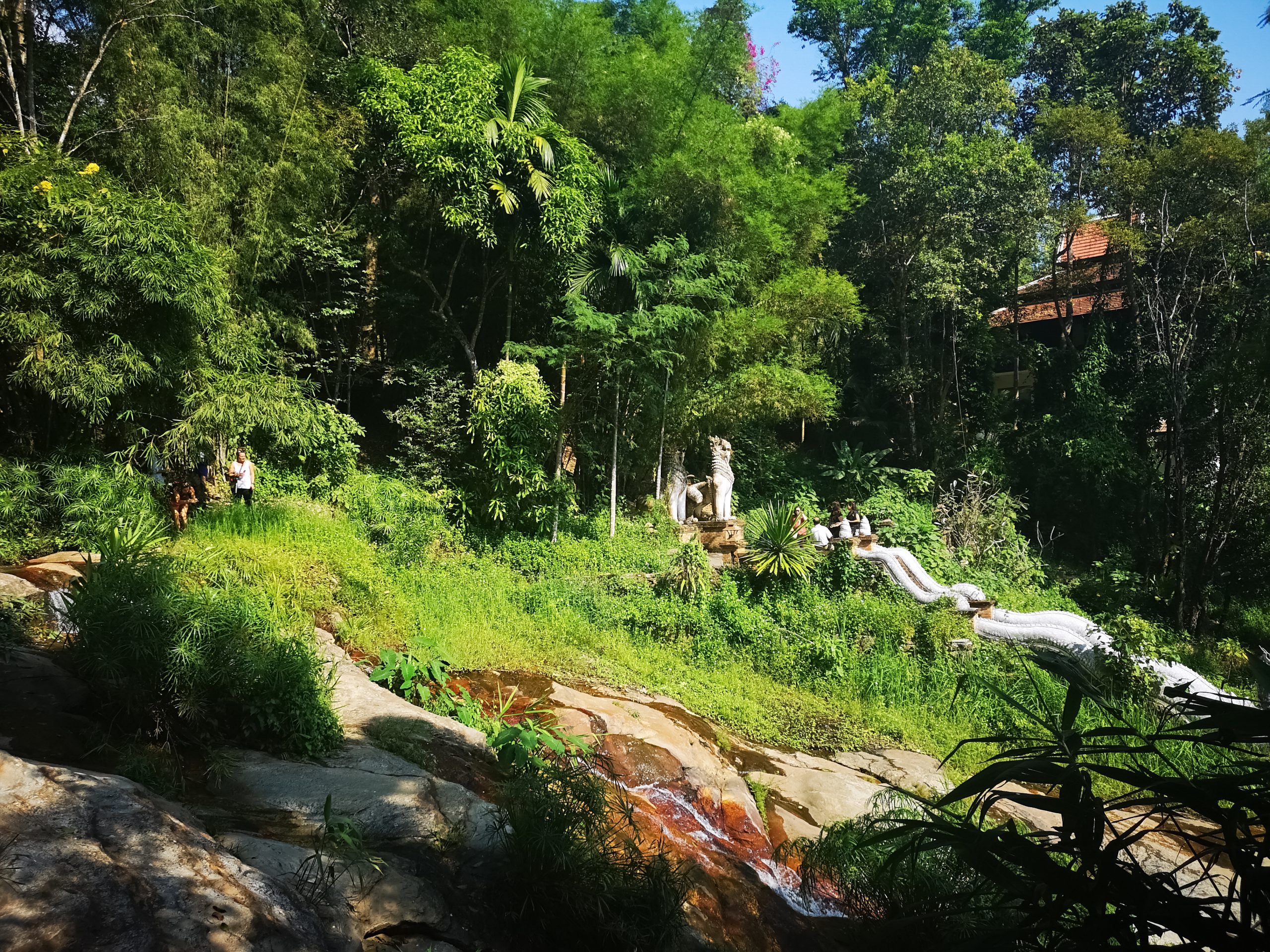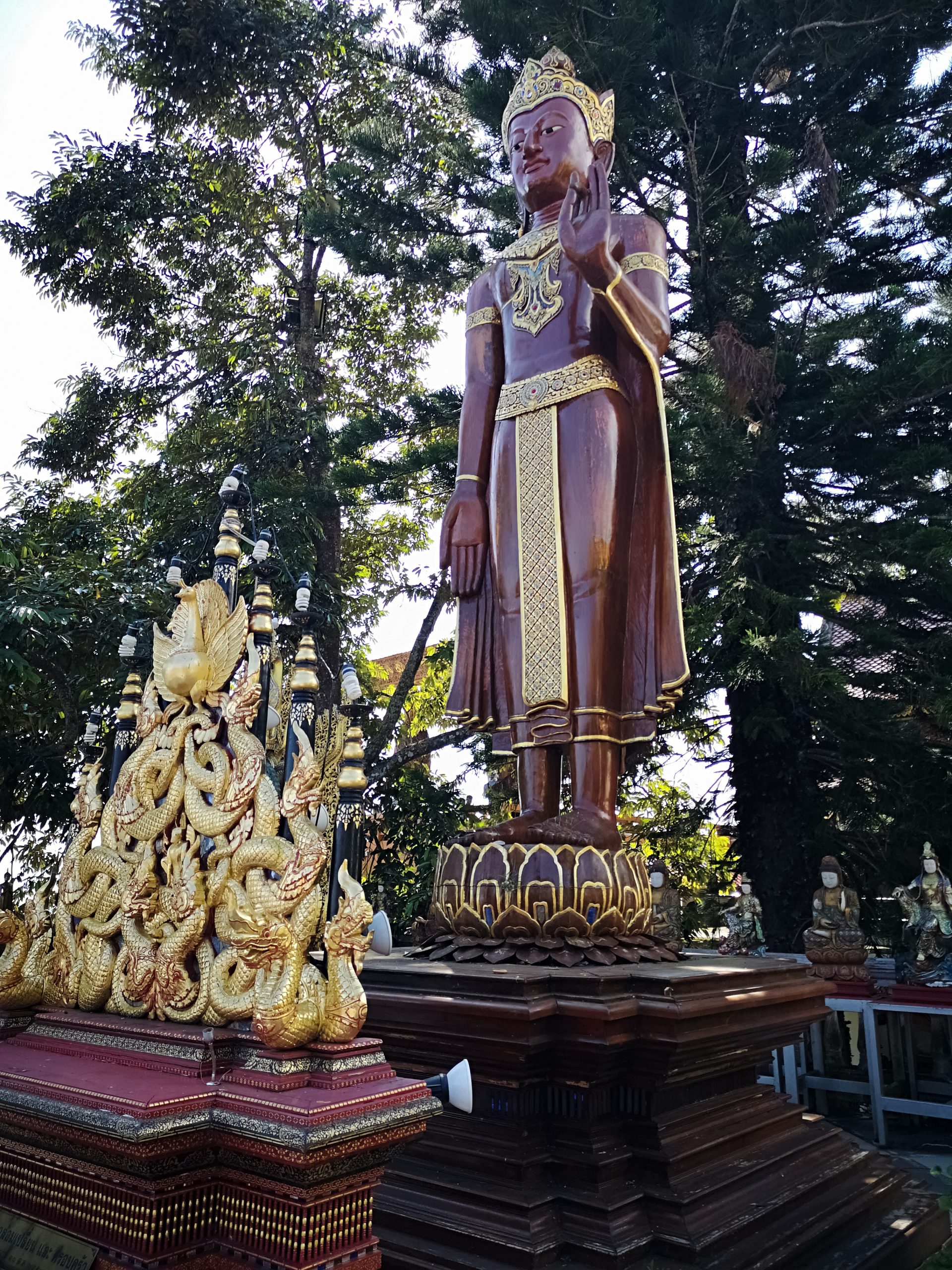 Situé en hauteur, on fait une halte au temple « Pha Lat ». Caché dans la végétation, l’environnement est paisible et serein. On y découvre plusieurs statues de divinités, bouddha, sphinx, dragons qui veillent sur toute la vallée et offrent une atmosphère mystique.