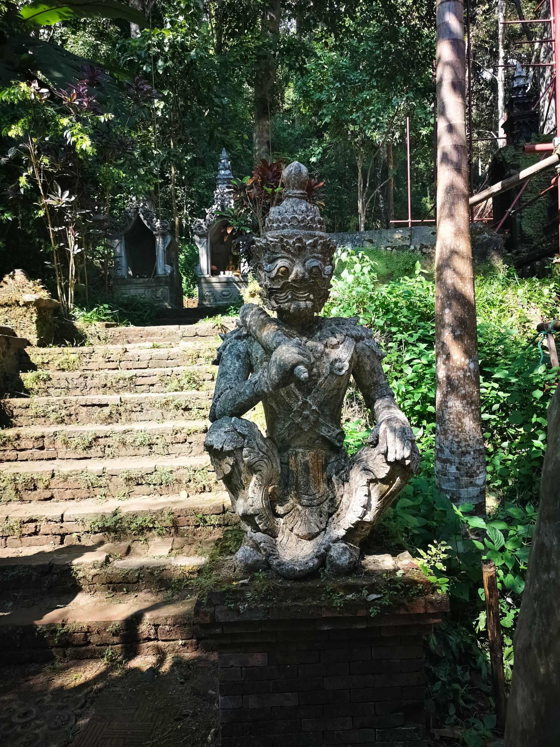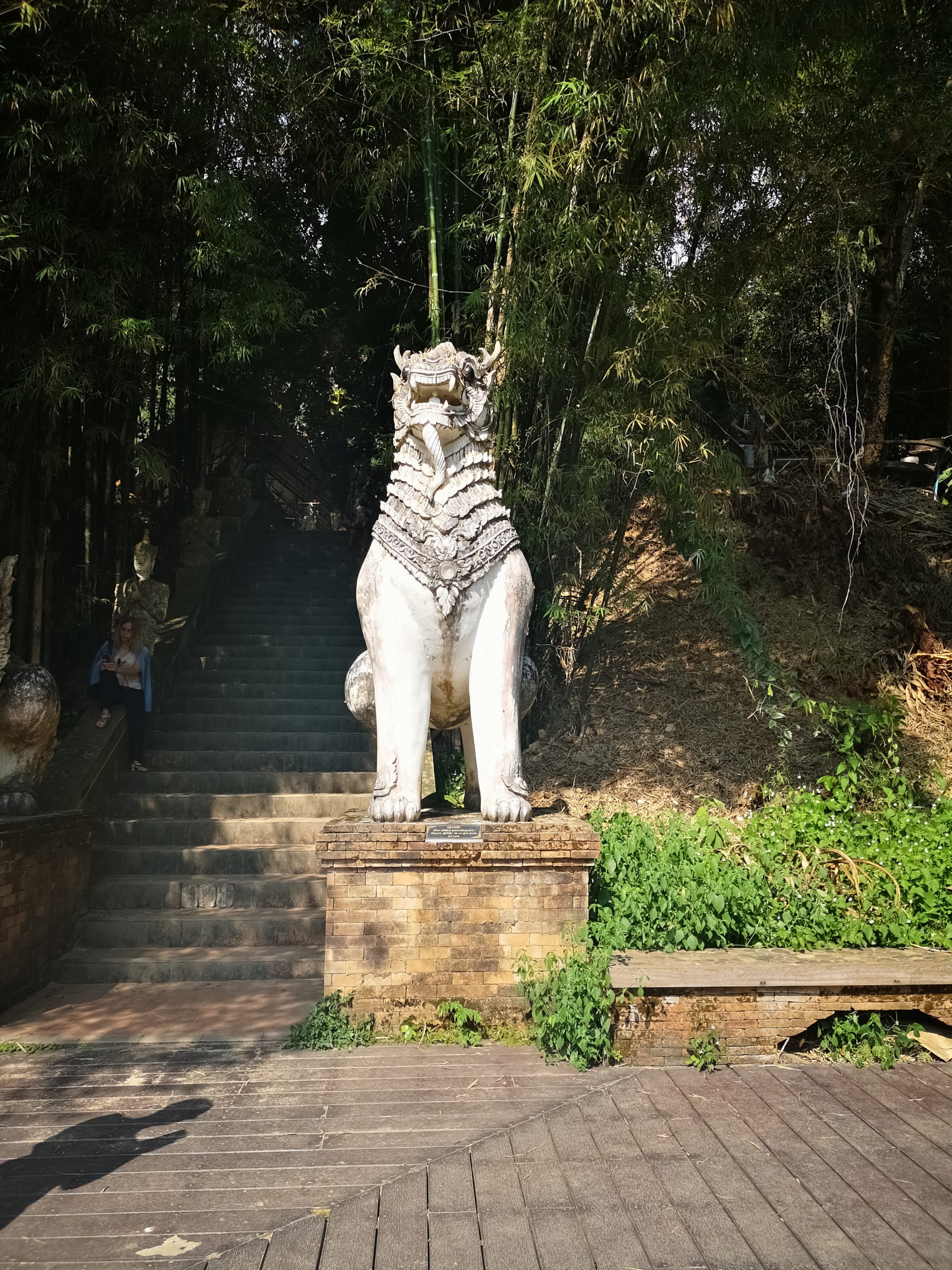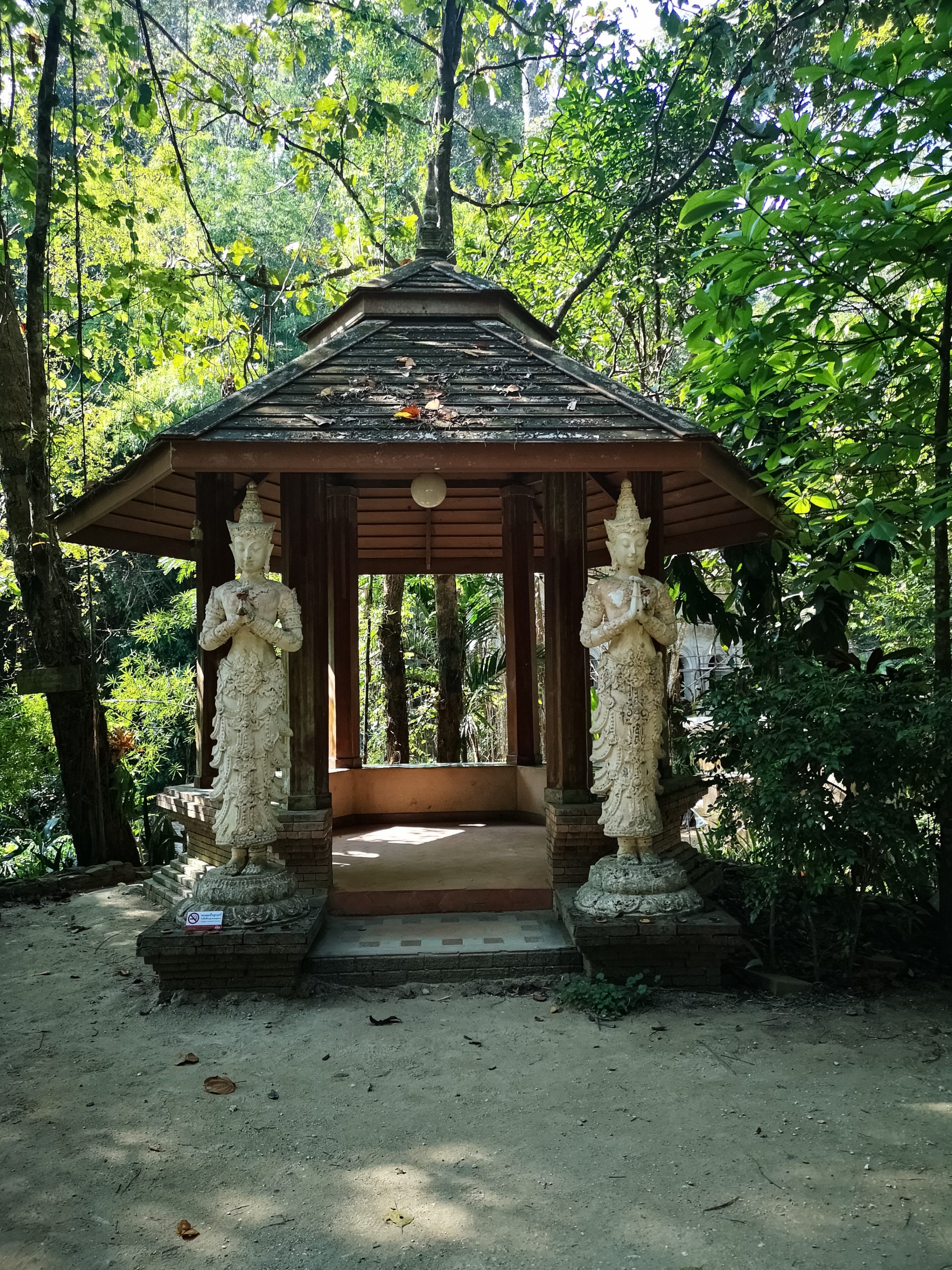 Vers 10h, nous voilà à l’entrée du sentier. Équipés d’une bonne paire de chaussures, d’eau et de notre sac à dos, nous suivons le chemin qui mène au temple Doi Suthep guidés par les foulards orange autours de quelques arbres.