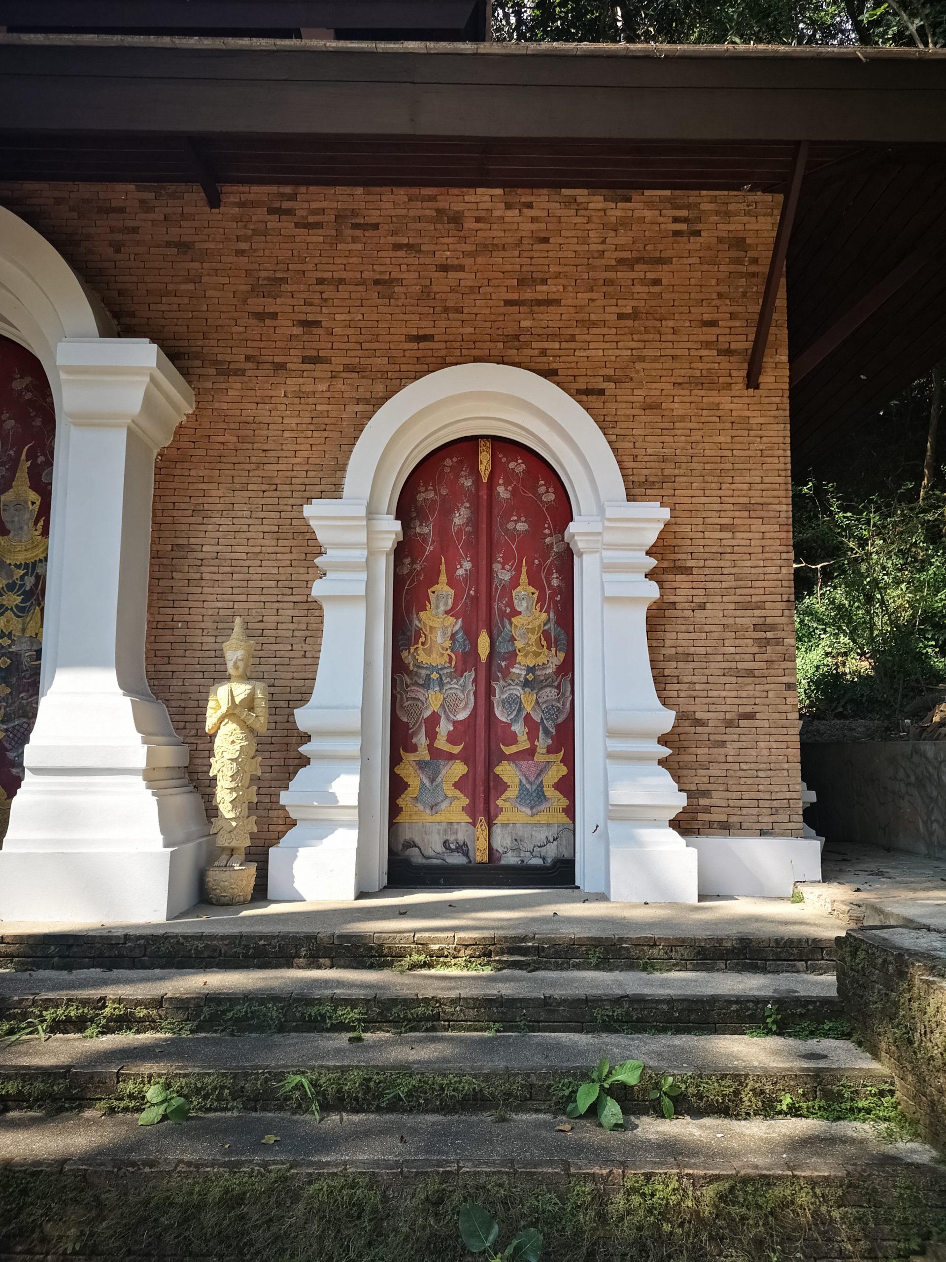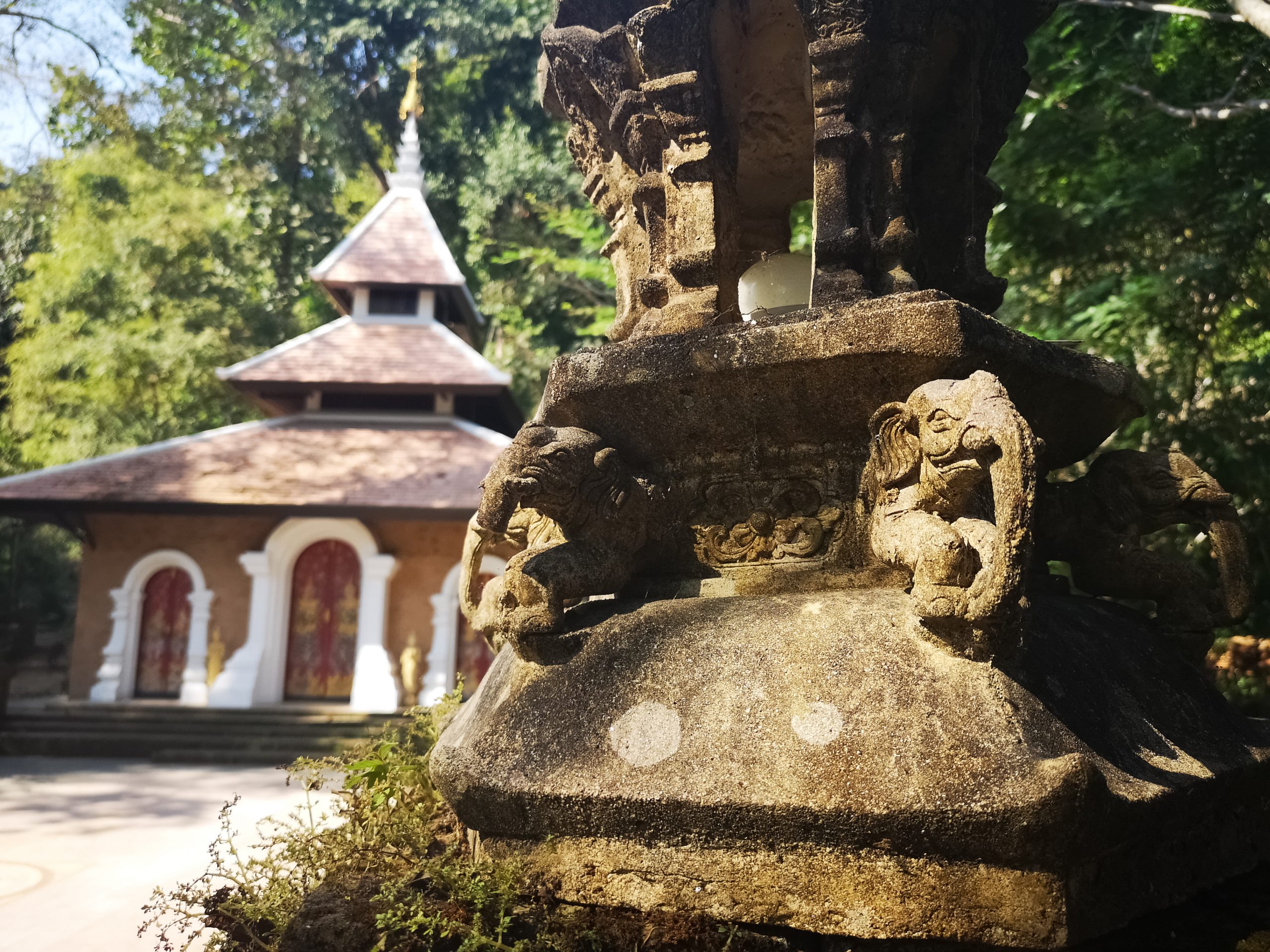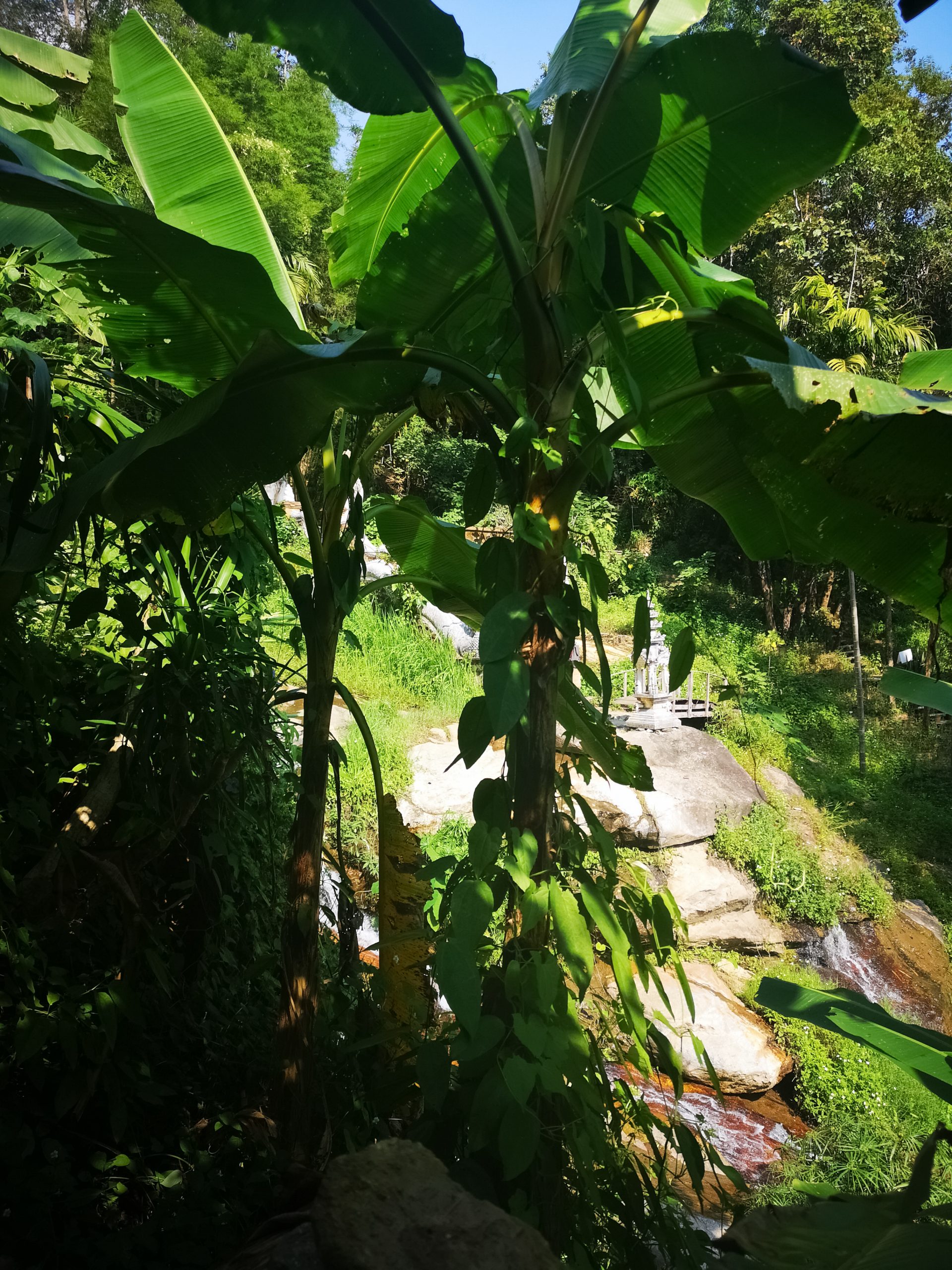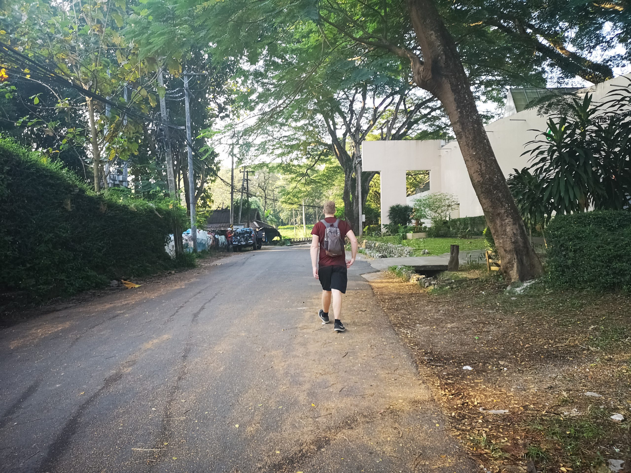 Vers 10h, nous voilà à l’entrée du sentier. Équipés d’une bonne paire de chaussures, d’eau et de notre sac à dos, nous suivons le chemin qui mène au temple Doi Suthep guidés par les foulards orange autours de quelques arbres.