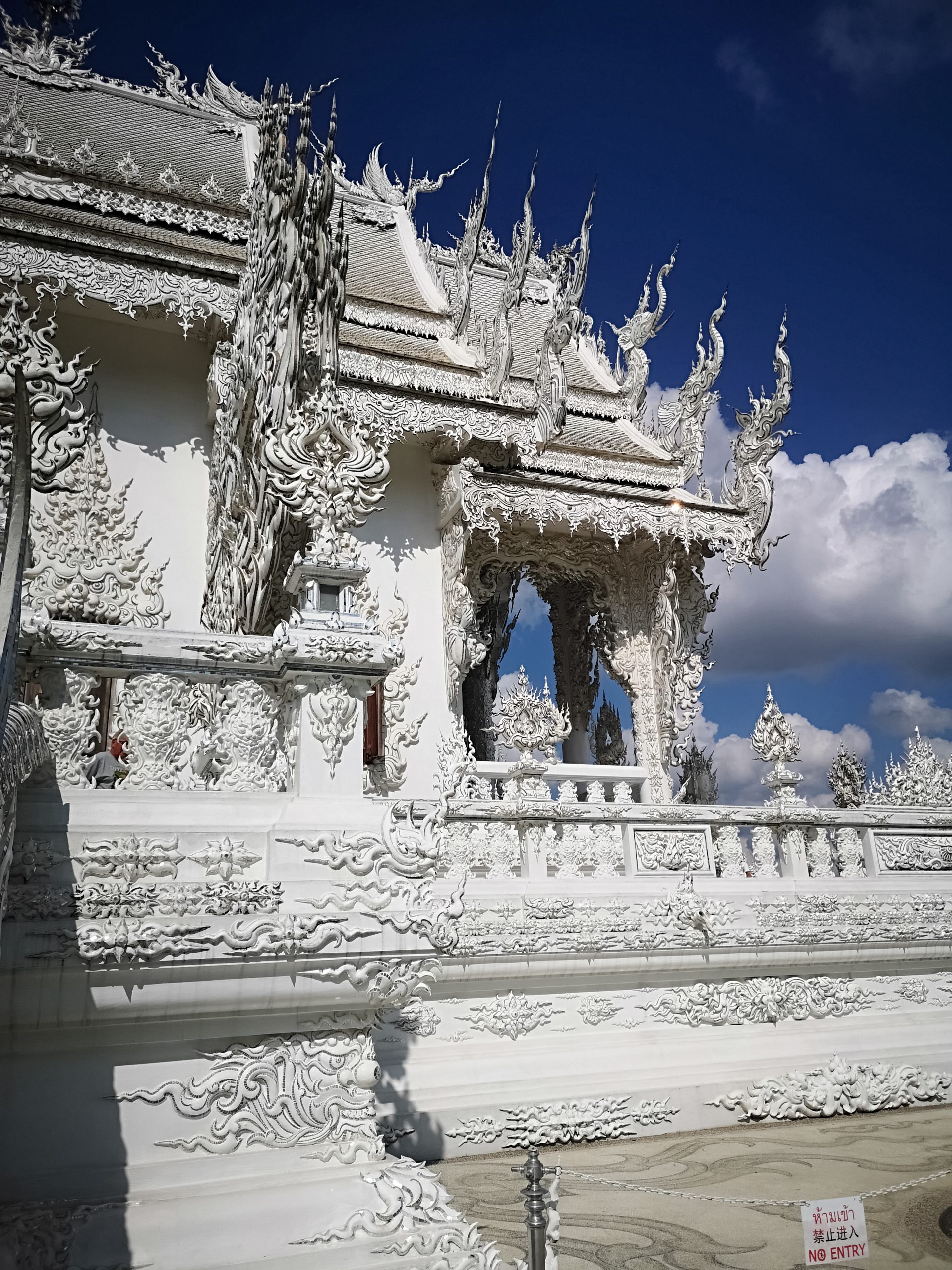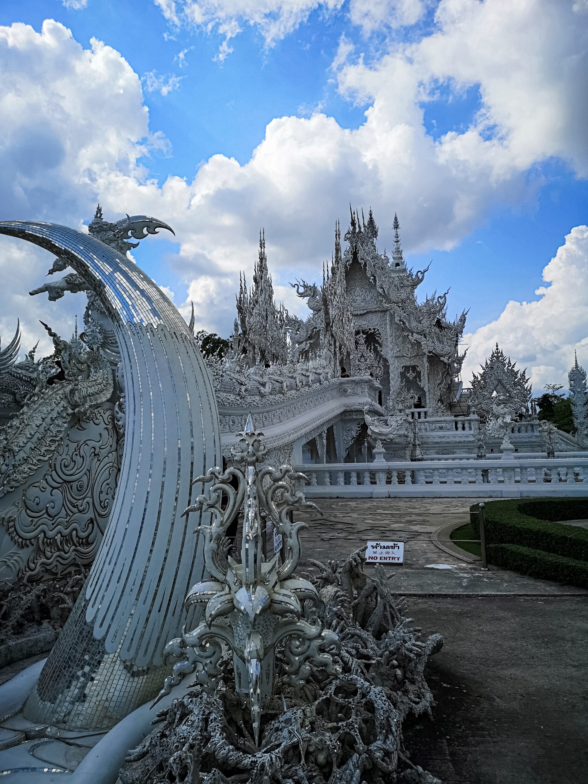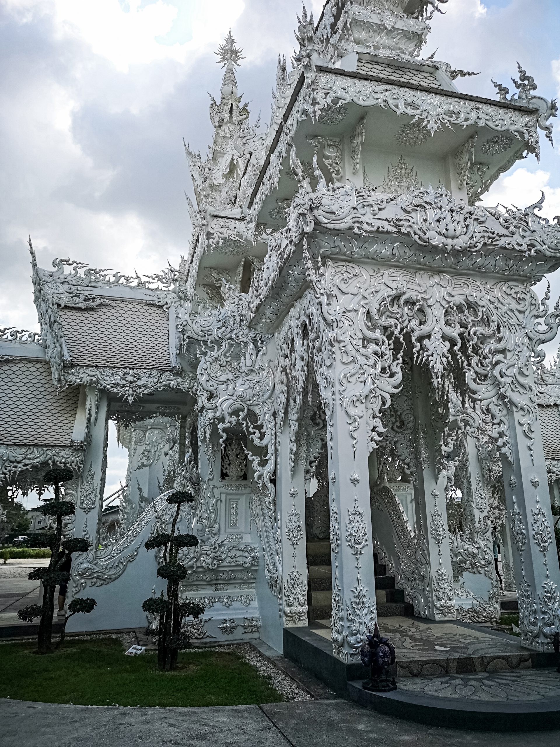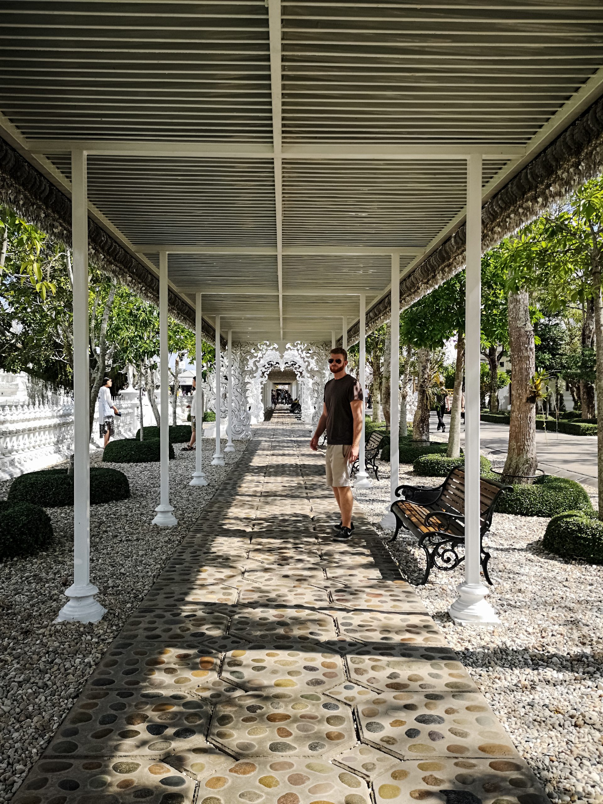Pour accéder au temple depuis le centre ville de Chiang Rai, Johan et moi avons pris un Song Twae. Nous y avons mis à peu près 20 min. Une fois sur place il faut compter 50 Baths par personne pour entrer sur le site et un peu plus pour louer un sarouel. Tête en l’air que je suis, je n’avais pas pensé à prendre le mien !