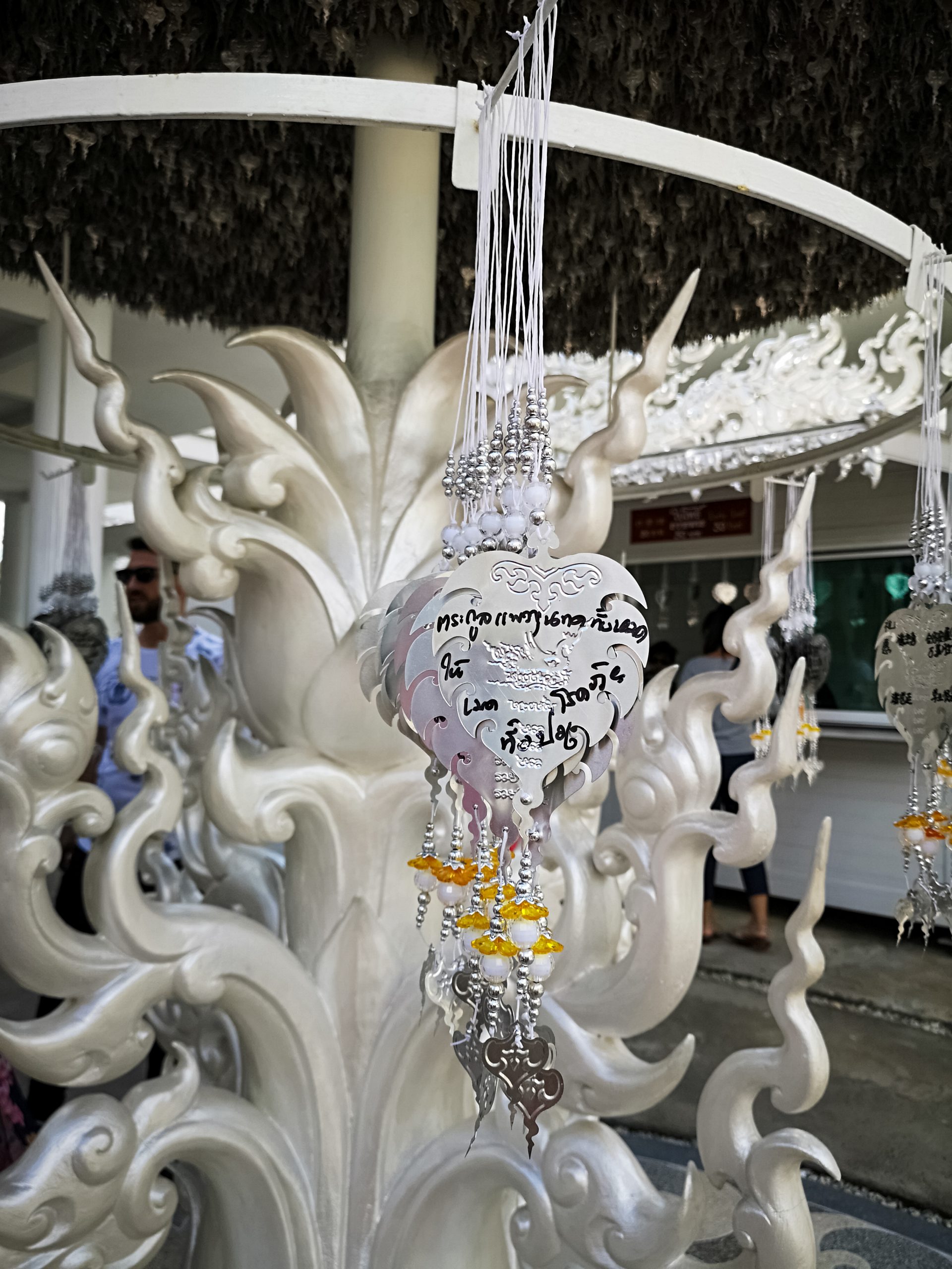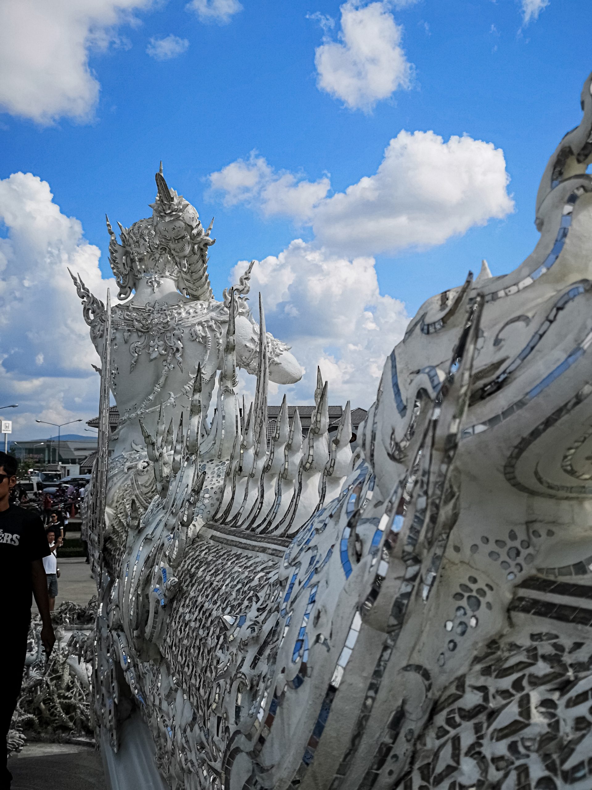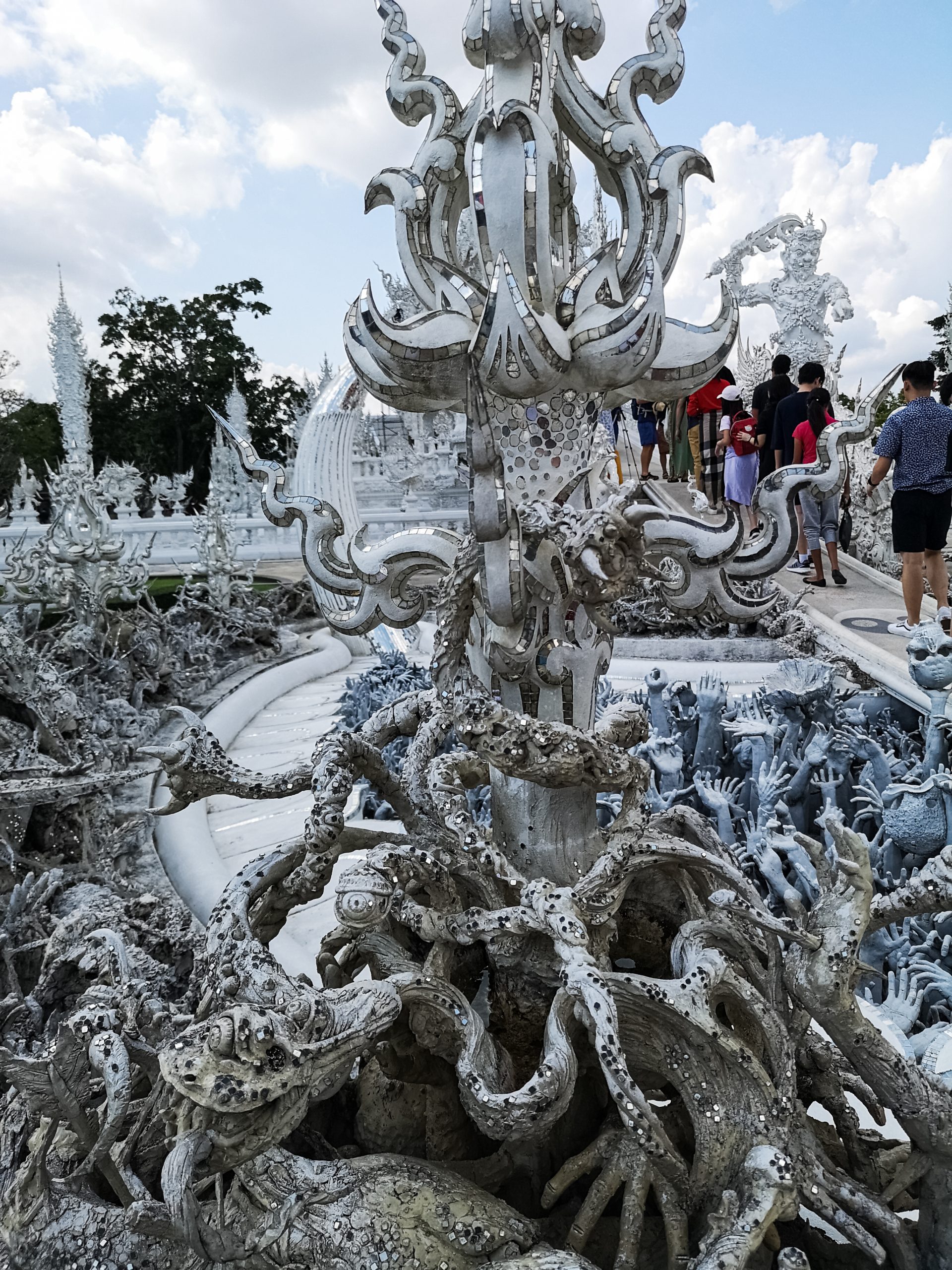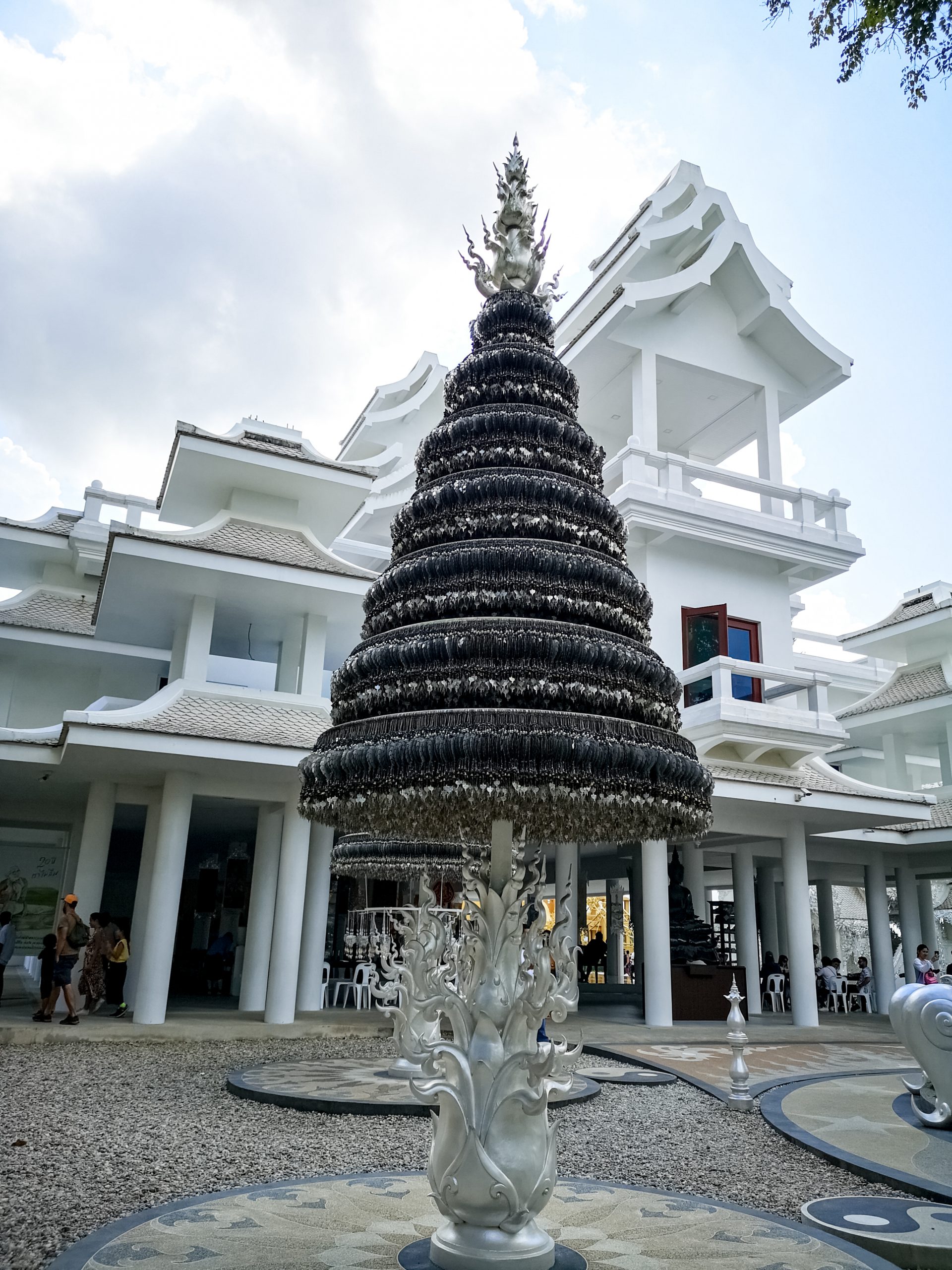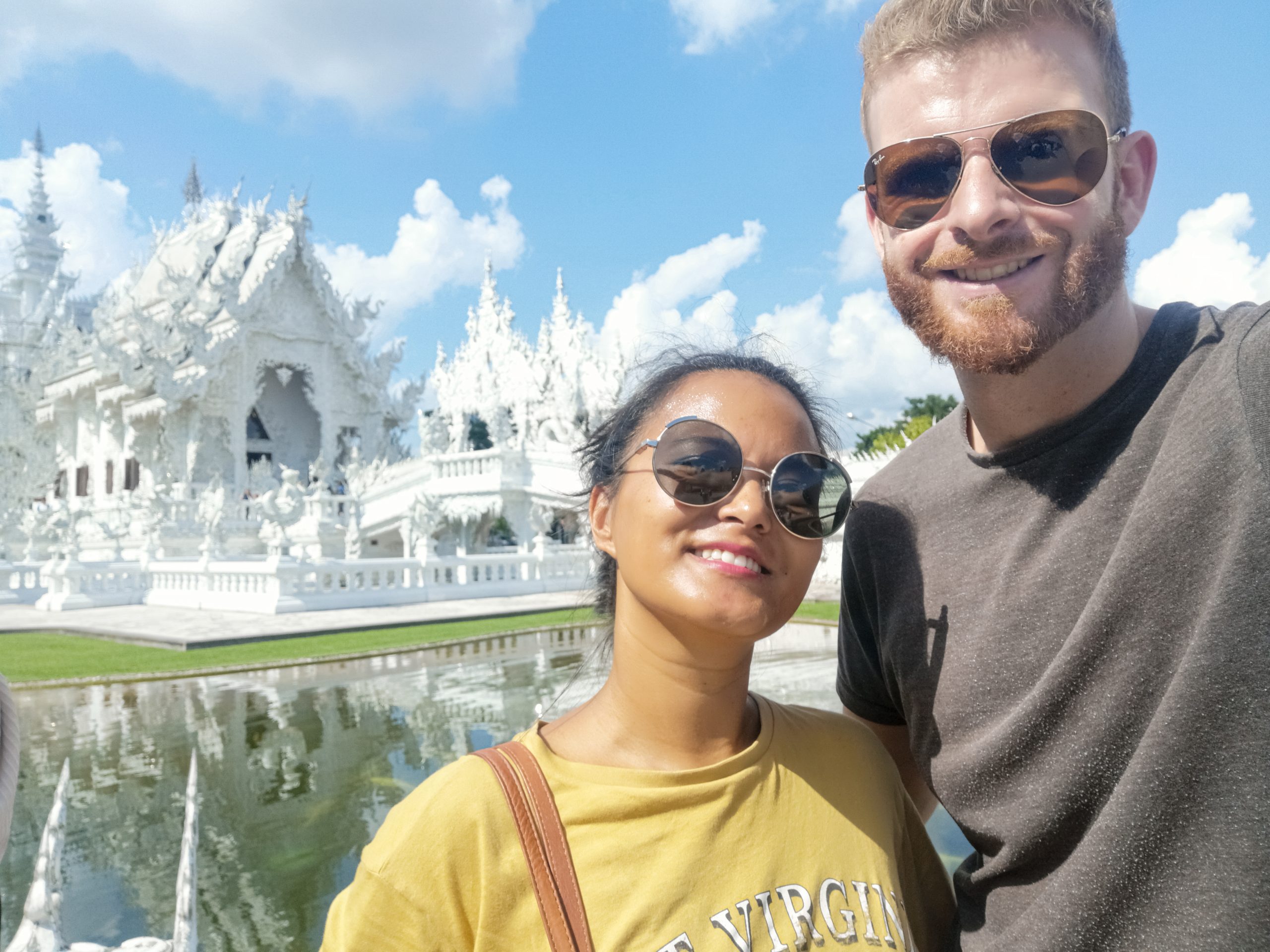 Pour accéder au temple depuis le centre ville de Chiang Rai, Johan et moi avons pris un Song Twae. Nous y avons mis à peu près 20 min. Une fois sur place il faut compter 50 Baths par personne pour entrer sur le site et un peu plus pour louer un sarouel. Tête en l’air que je suis, je n’avais pas pensé à prendre le mien !