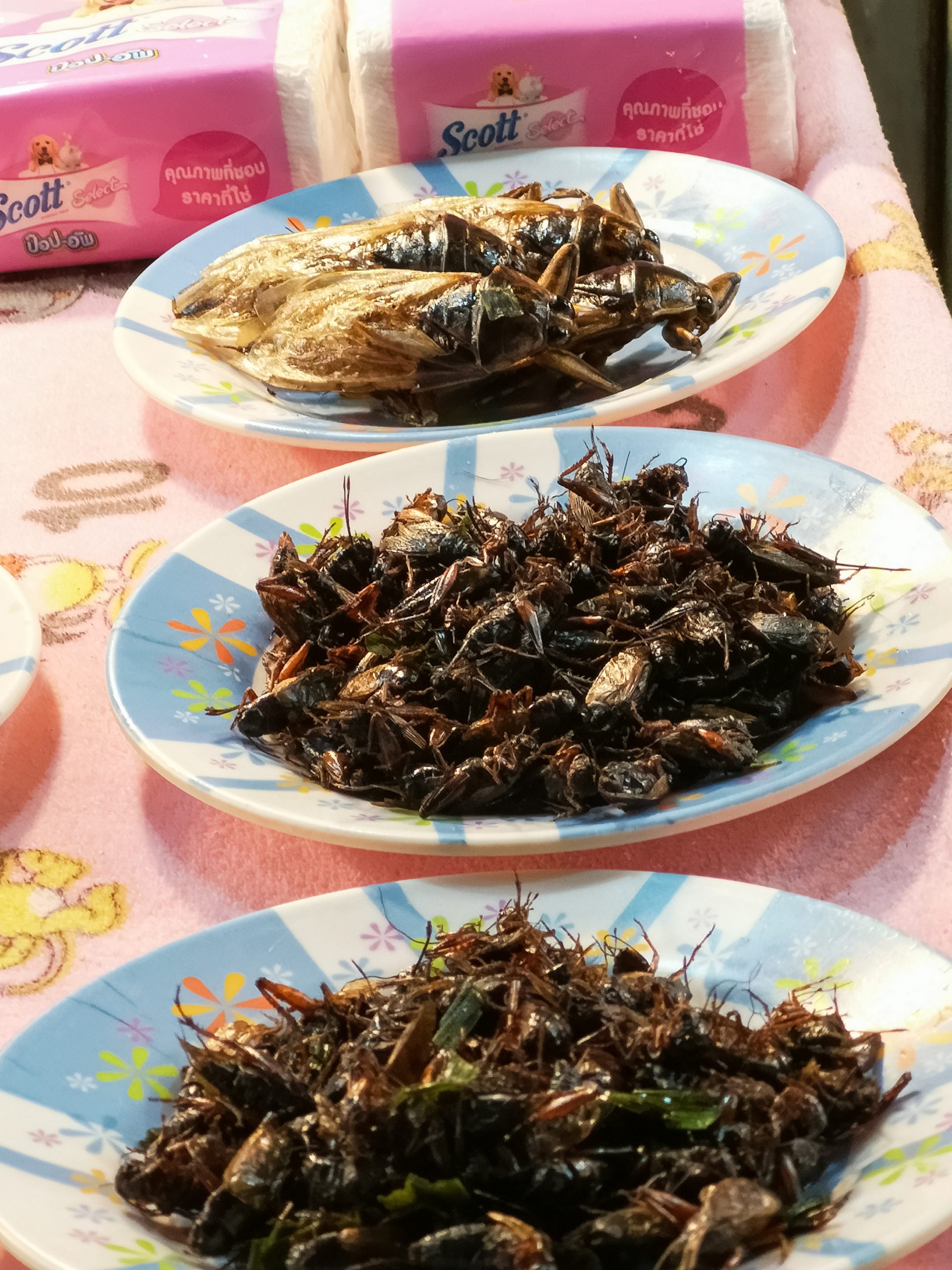 On fait également un tour au marché nocturne » Night Bazaar » où là, on teste des larves cuites. Je vous avoue c’est un peu spéciale. Le coca cola m’aide à faire passer la texture et le goût!