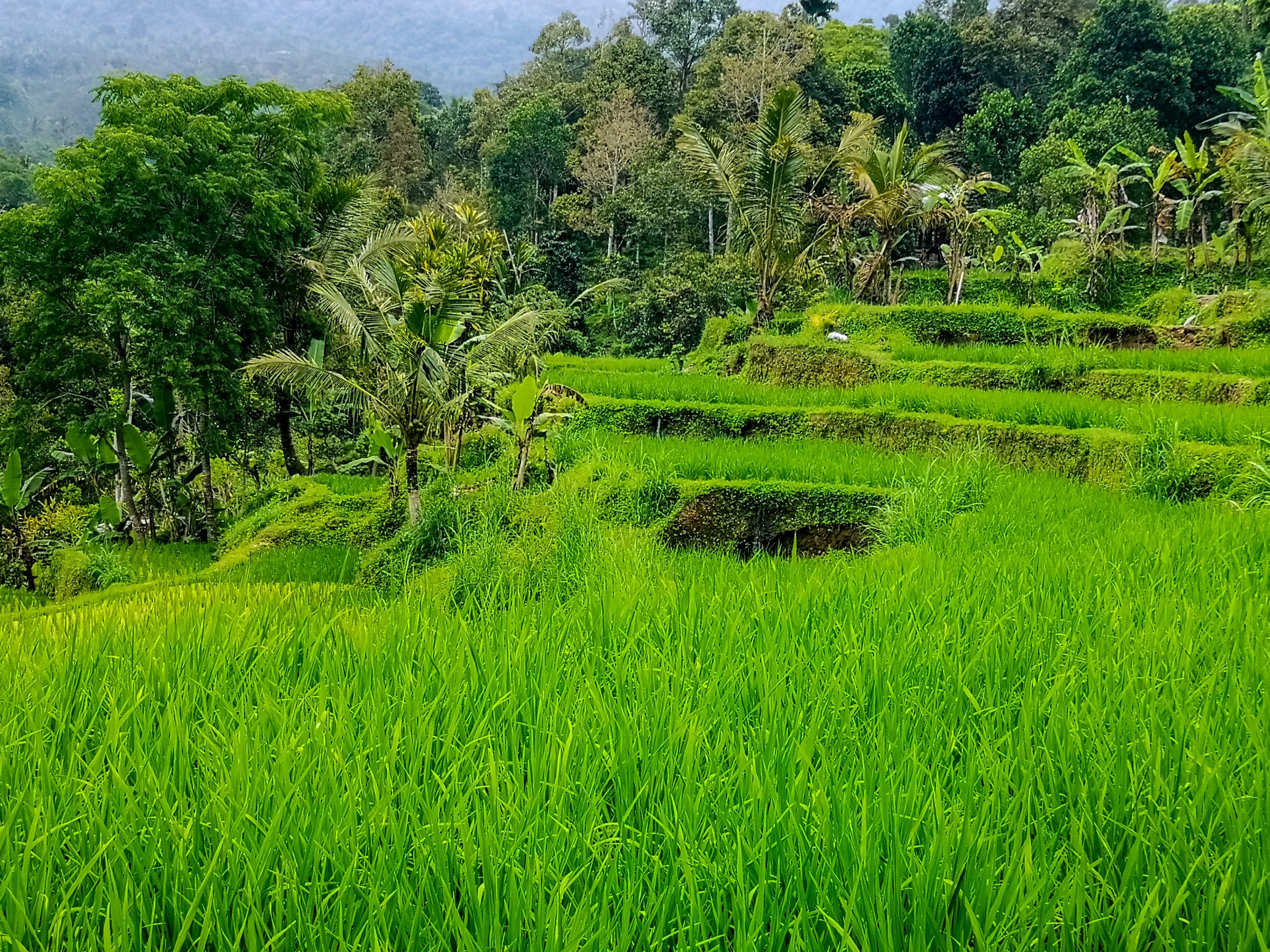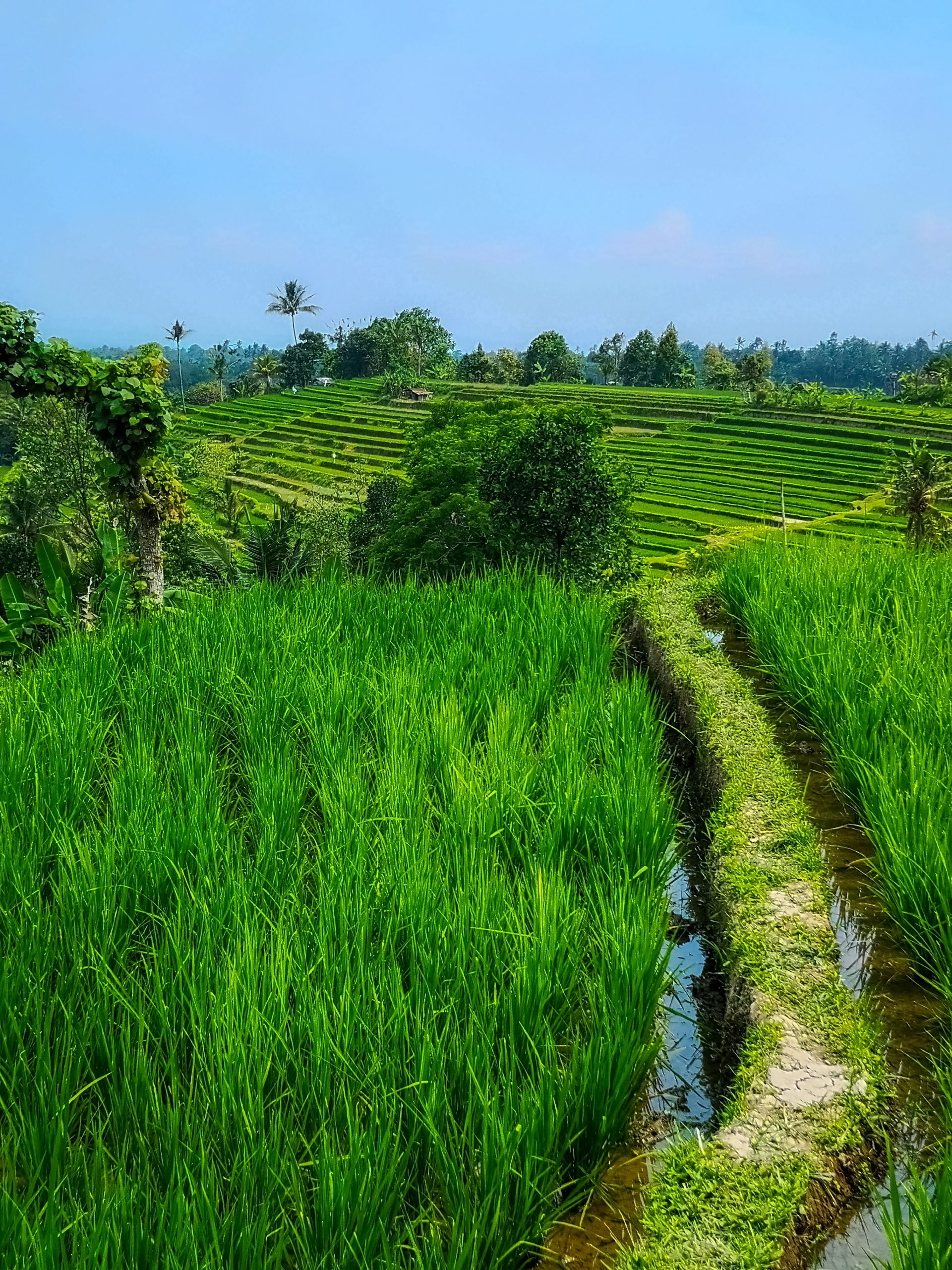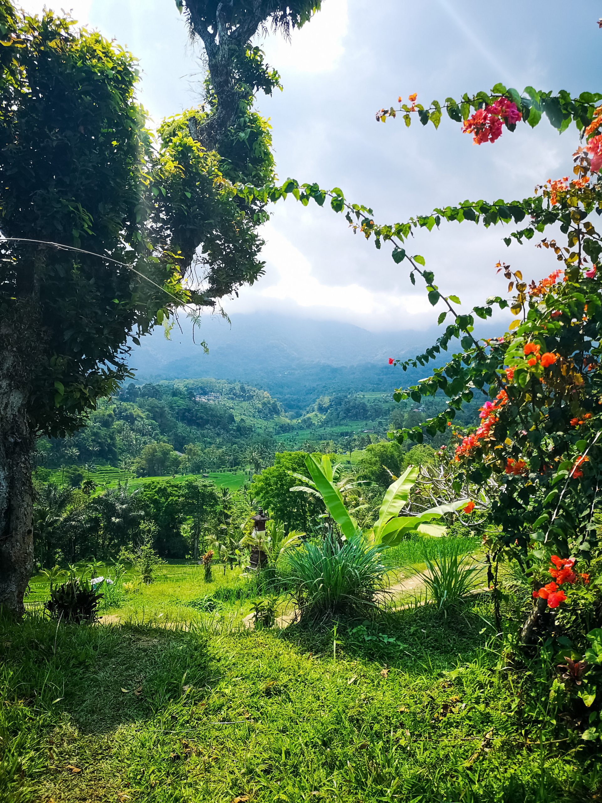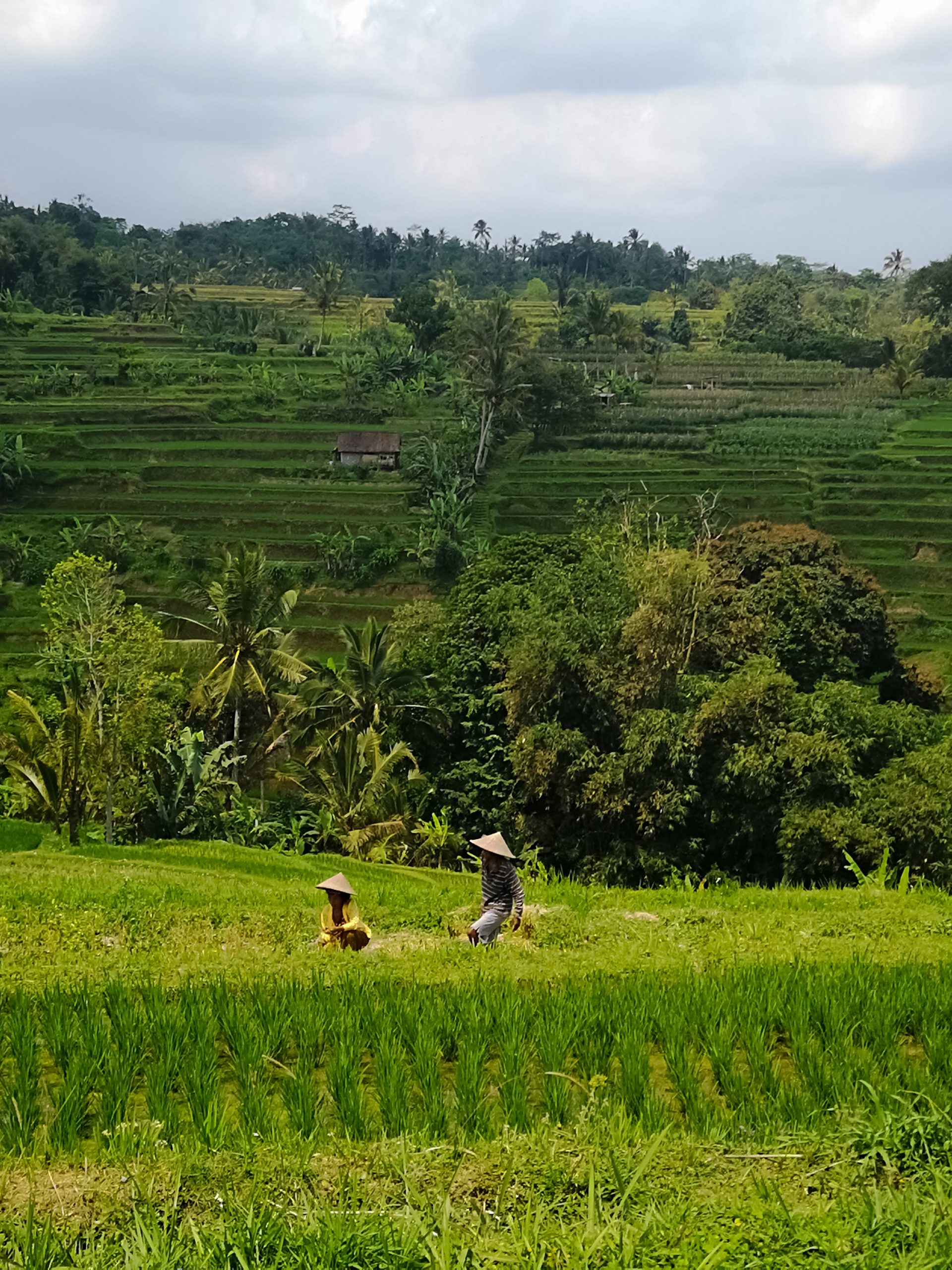 Lorenzo que nous avions rencontré en Australie nous a également rejoints. Nous sommes allés tous les 5 au niveau de Kabupaten Tabanan pour voir les plateaux de rizières. Le paysage est magnifique et à couper le souffle. Nous nous sommes arrêtés sur un point de vue, nous avions une vue panoramique grandiose où les nuances de vert dominaient toute la vallée.