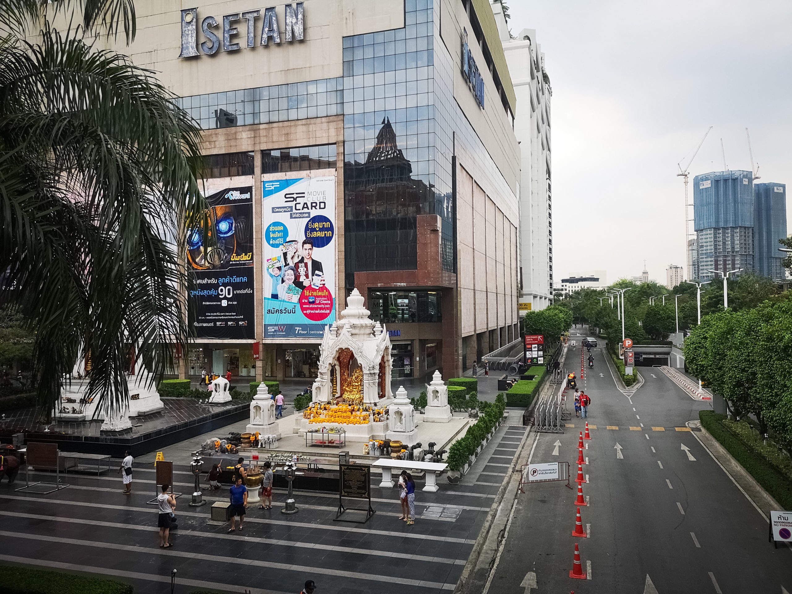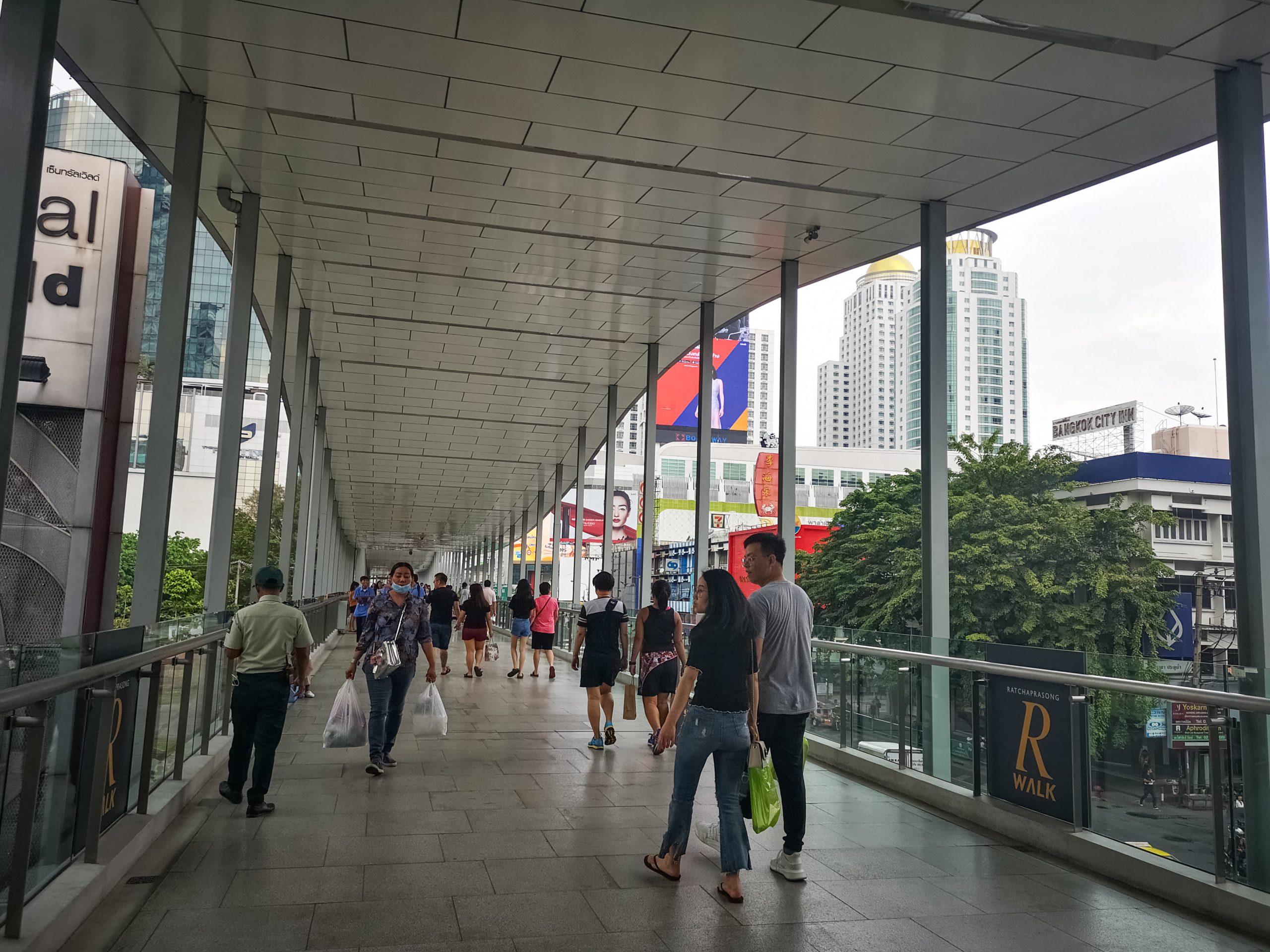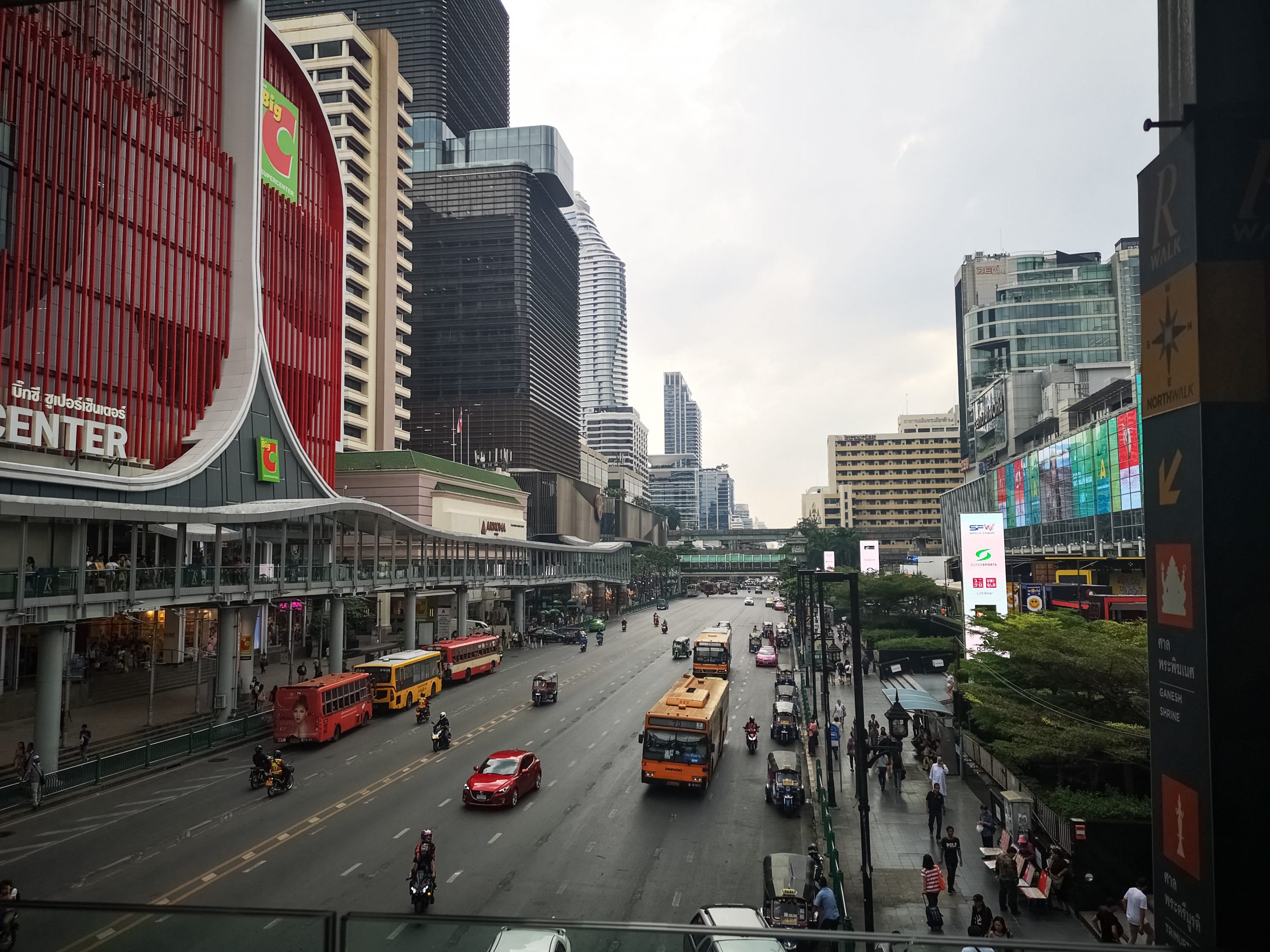 On a pu rejoindre facilement le tram pour se rendre à « Ratchadamri Road », quartier touristique pour acheter les cadeaux de souvenir. De chaque côté de la rue, se trouve le Central World et le Big C Supercenter. On y trouve les mêmes boutiques qu’en Europe mais j’ai été impressionnée de l’étendu des bâtiment et de leur configurations. Les deux grands centres commerciaux sont accessible par un passage spécialement pour les piétons au dessus de la route.
