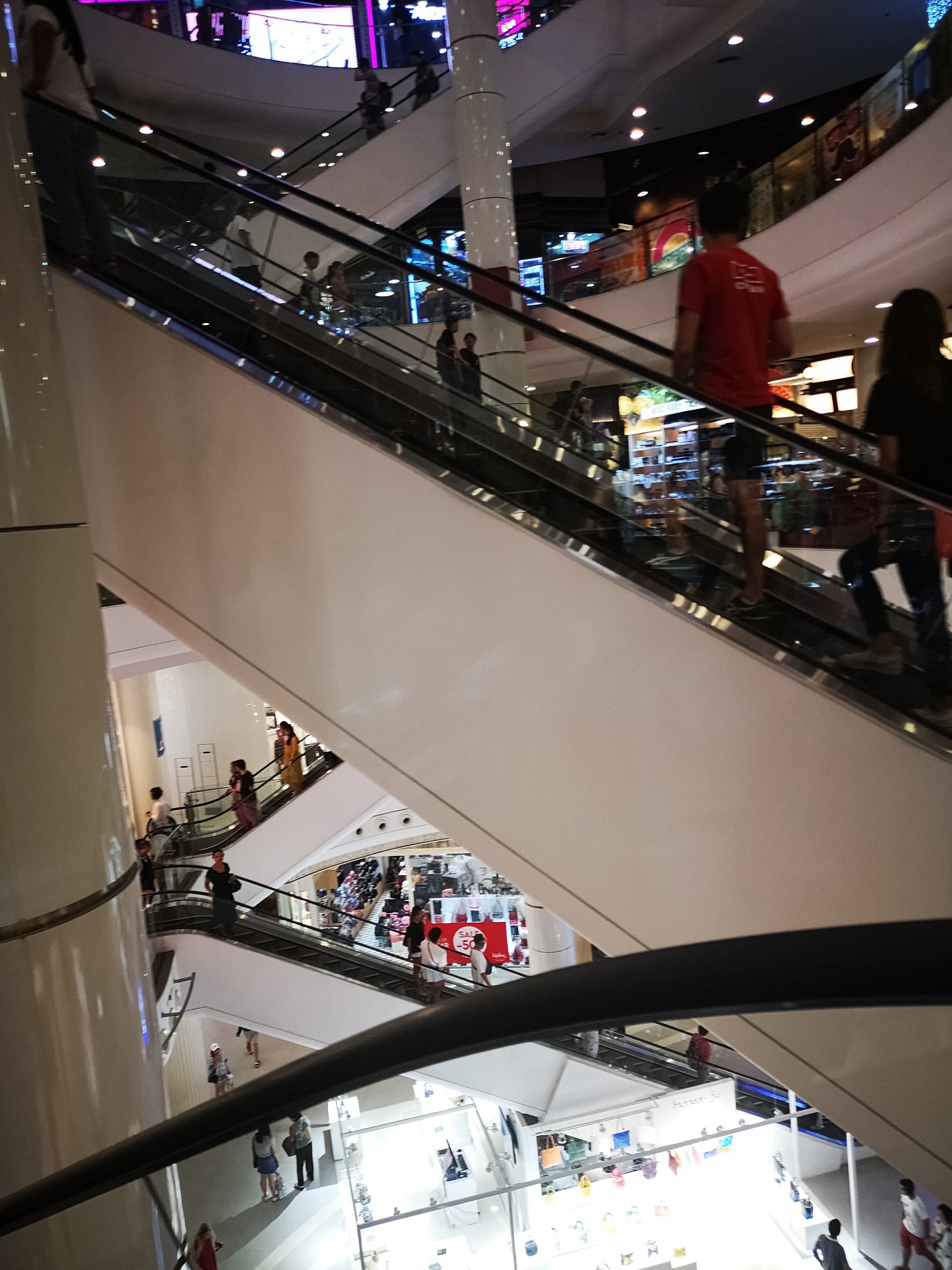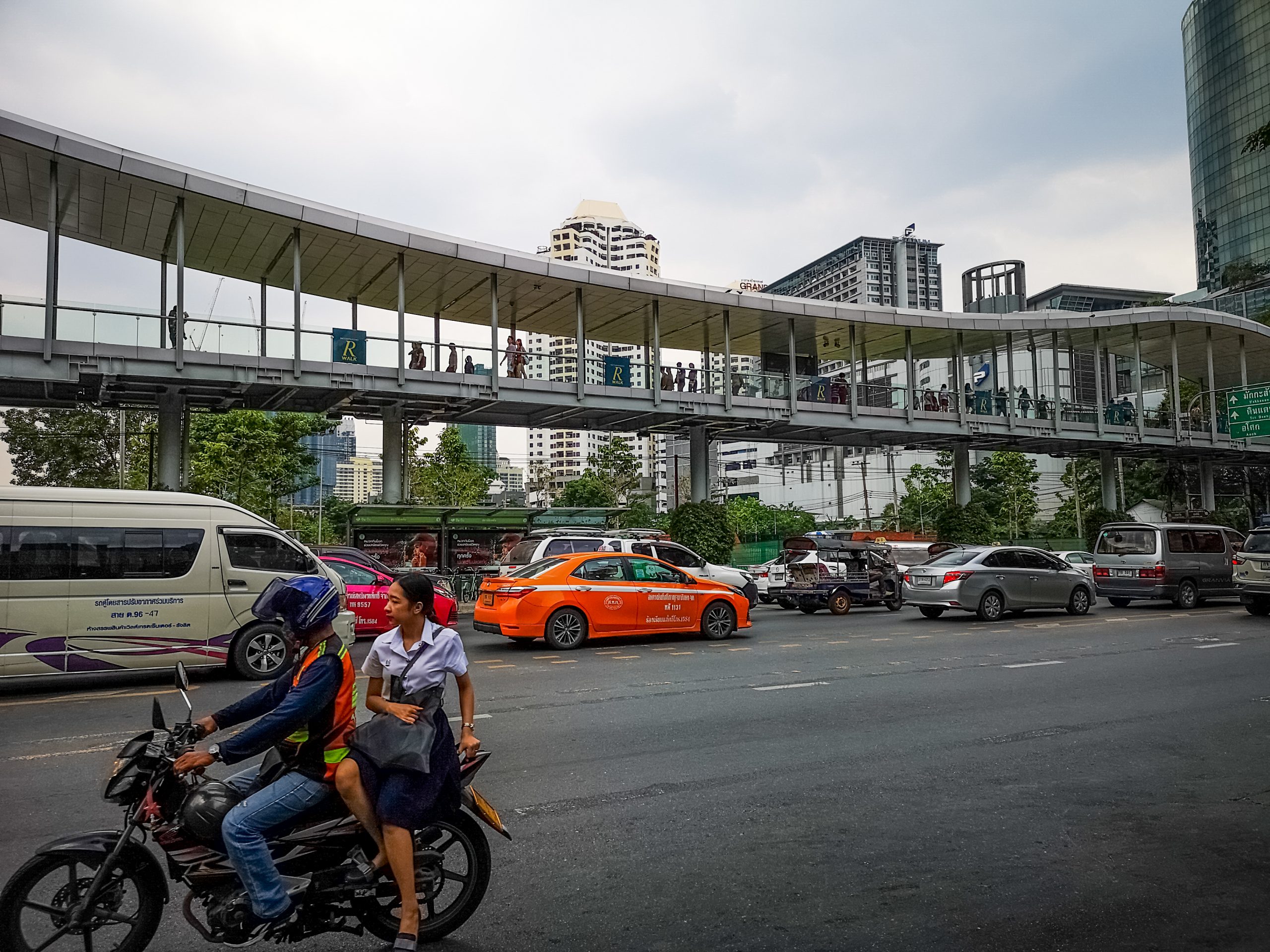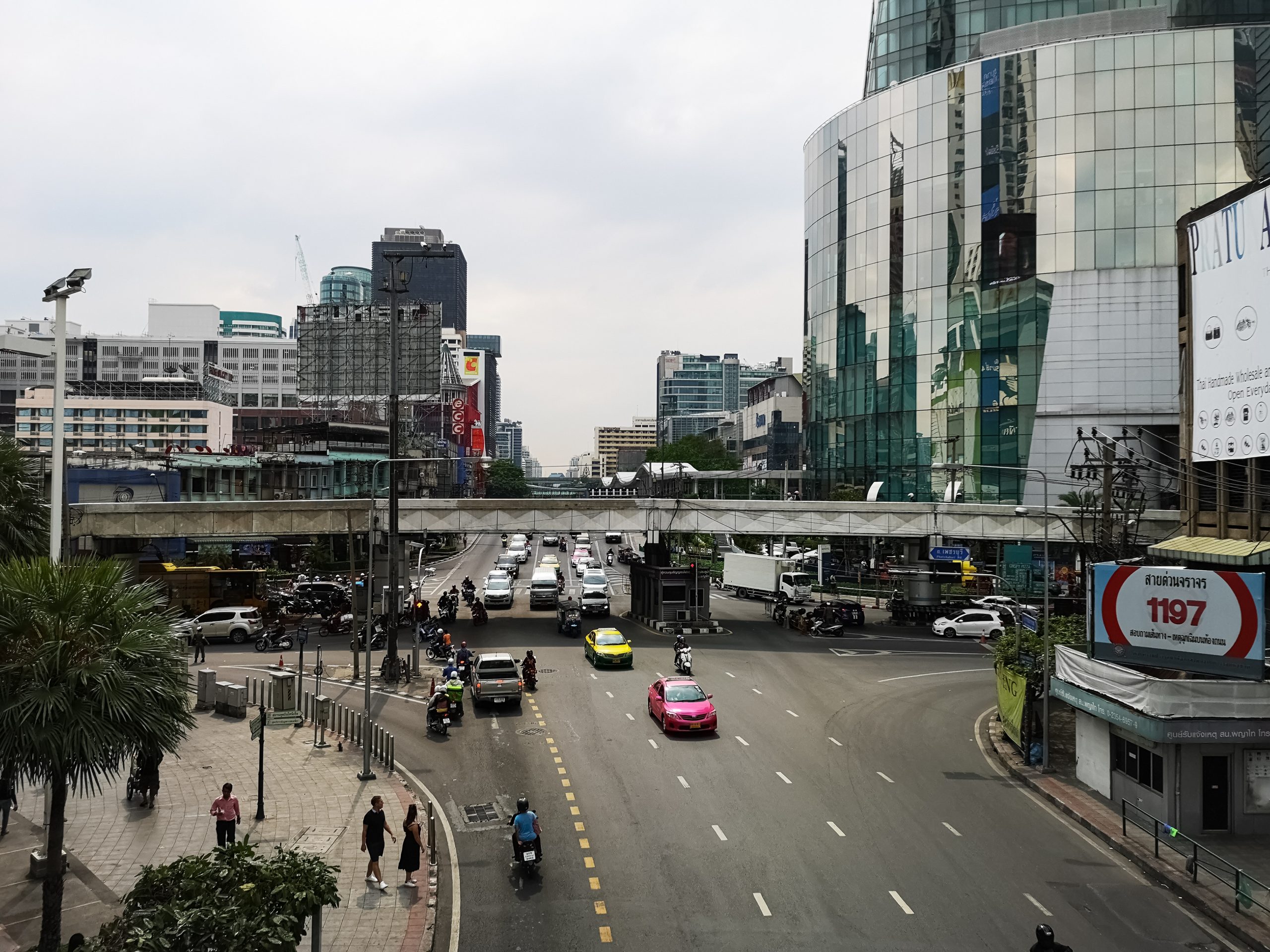 On a pu rejoindre facilement le tram pour se rendre à « Ratchadamri Road », quartier touristique pour acheter les cadeaux de souvenir. De chaque côté de la rue, se trouve le Central World et le Big C Supercenter. On y trouve les mêmes boutiques qu’en Europe mais j’ai été impressionnée de l’étendu des bâtiment et de leur configurations. Les deux grands centres commerciaux sont accessible par un passage spécialement pour les piétons au dessus de la route.